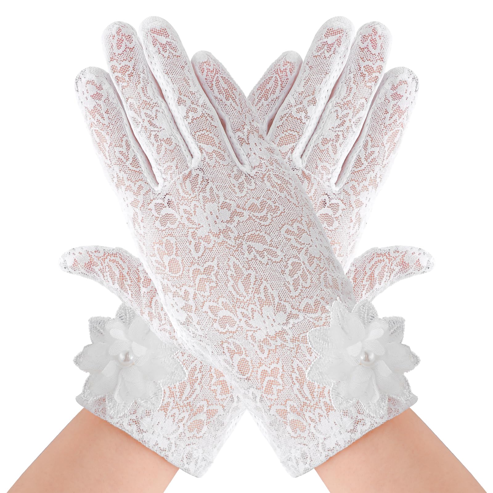 Lusofie Lace Gloves for Women Short Floral Gloves Fingerless Ladies Gloves Elegant Womens Gloves Sheer for Wedding Party(White)