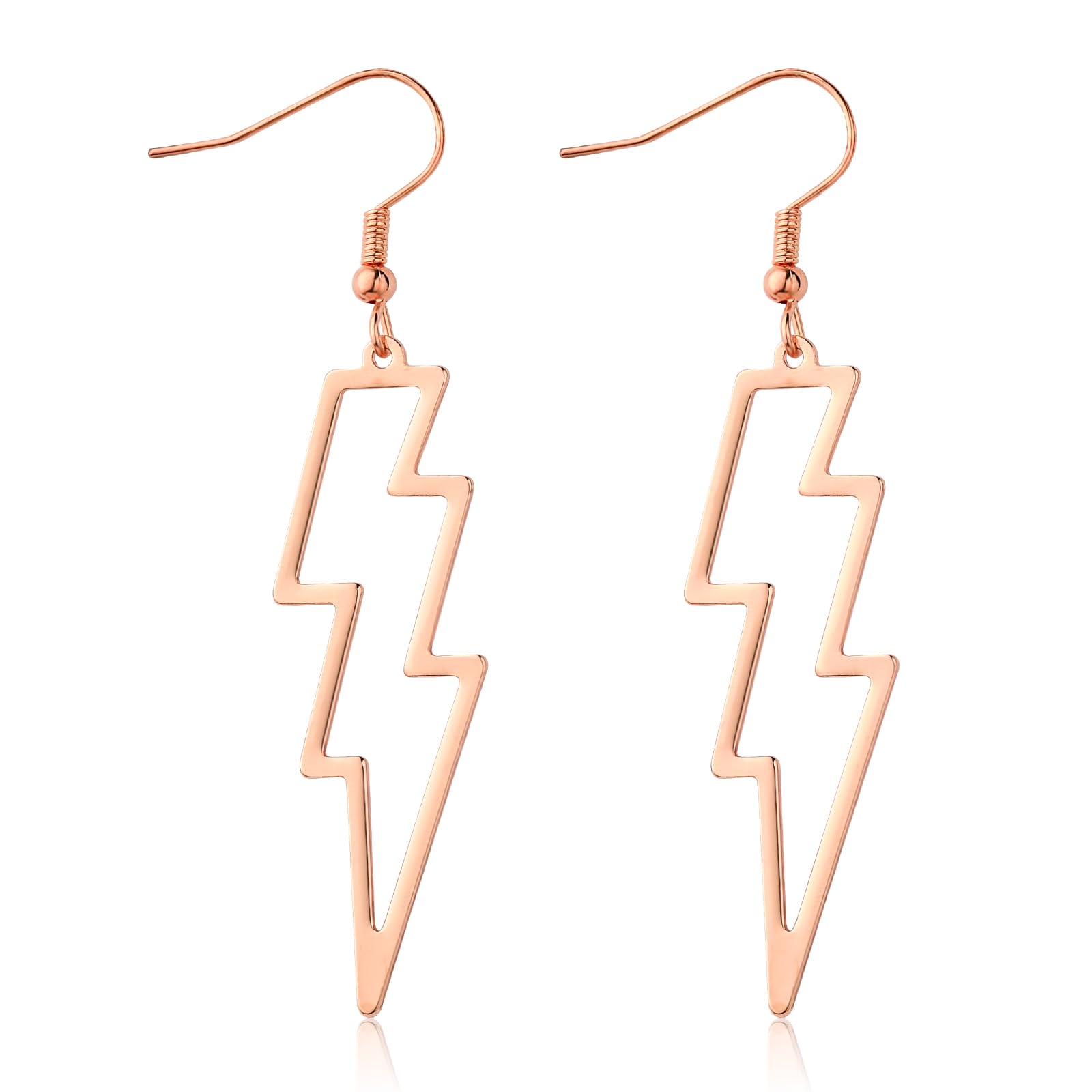 Lusofie Lightning Bolt Earrings Rose Gold Lightning Earrings 80s Punk Flash Thunder Hook Earrings Dangle Earrings for 80's Party