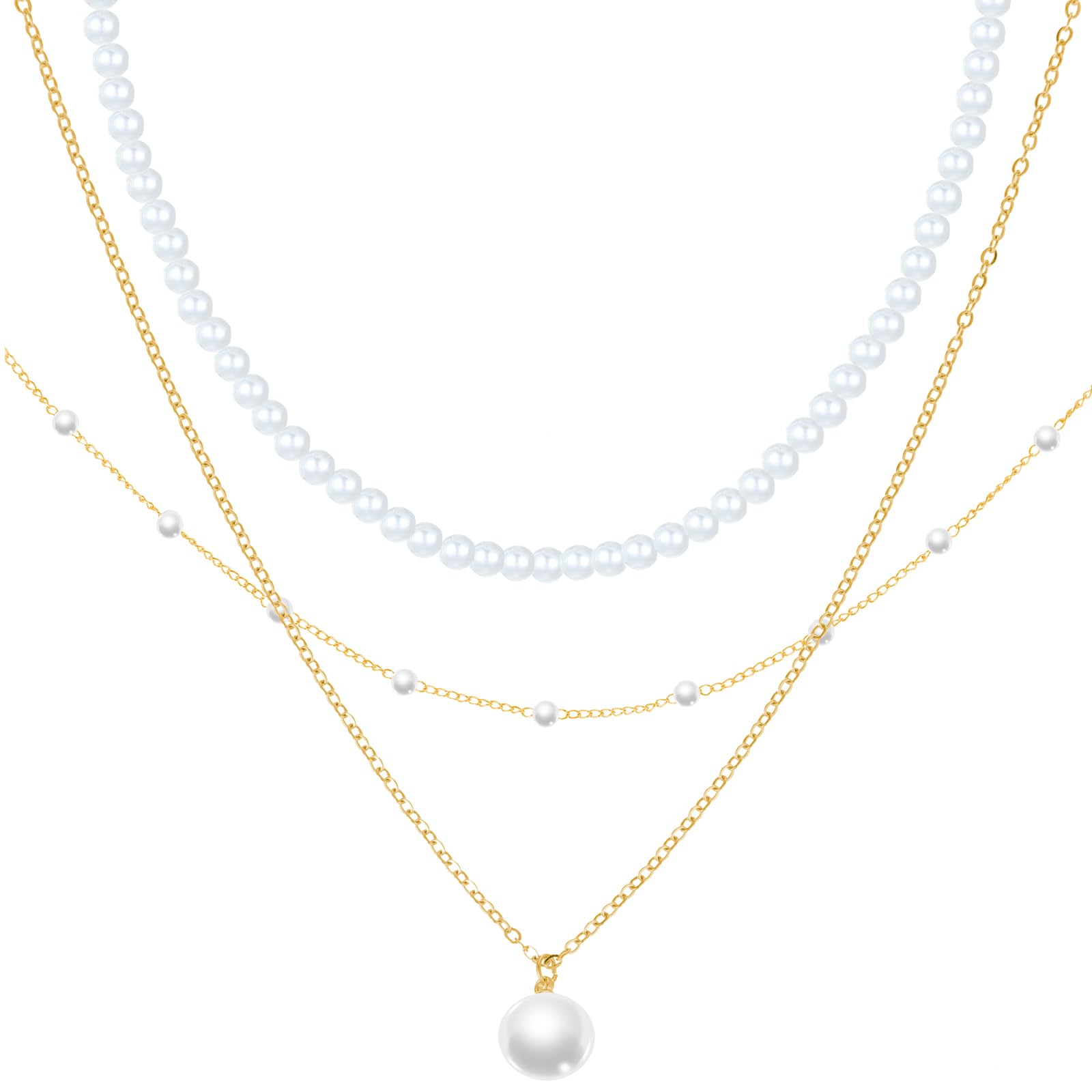 Lusofie Pearl Choker Necklaces for Women Three Layered Pearl Necklace Dainty Pearls Necklace Layered Gold Stacked Necklaces for Women