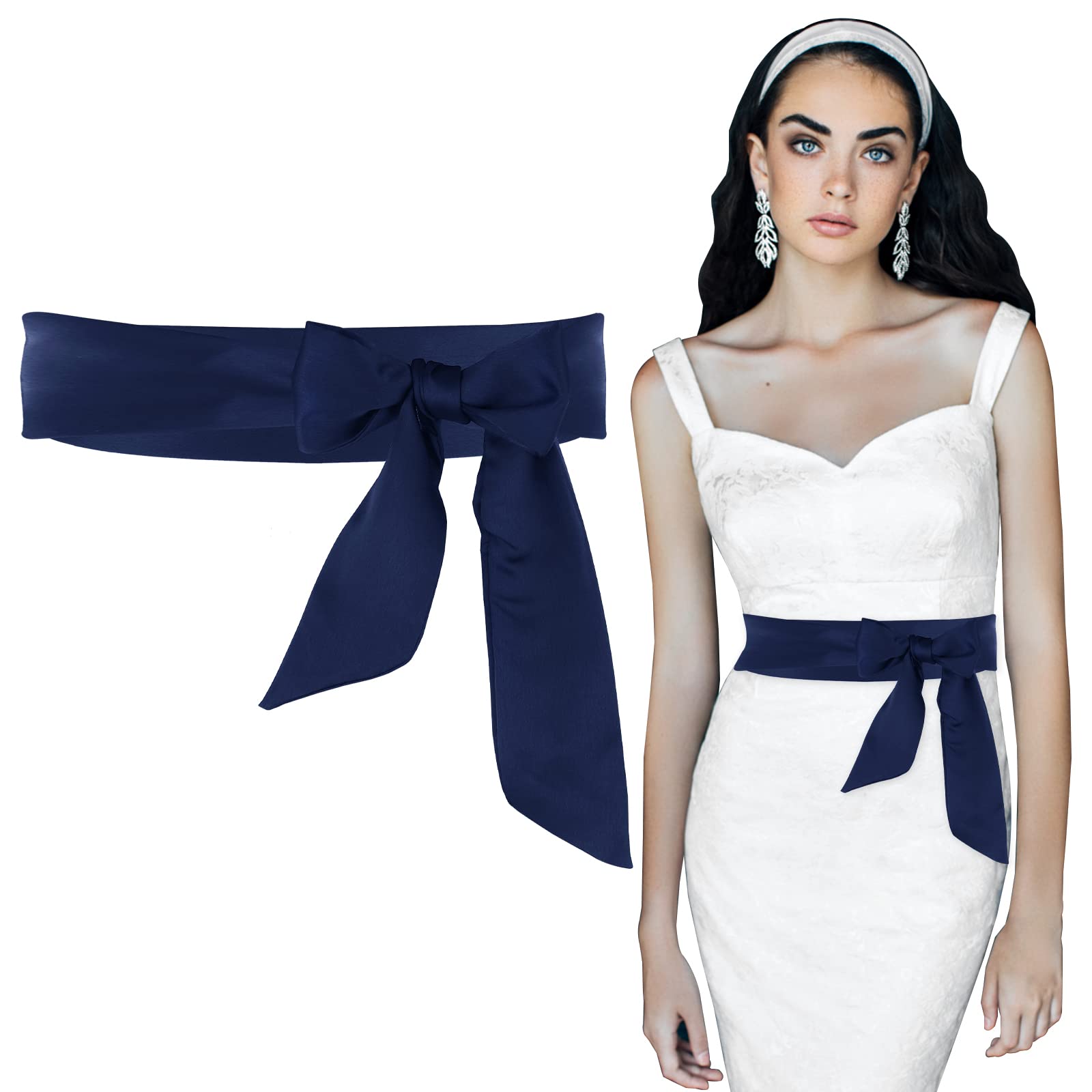 Lusofie Sash Belt for Dress, 2 x 79inch Blue Sash Dress Belt Wide Double Side Satin Belt for Women Wedding Bridesmaid Bridal Belt