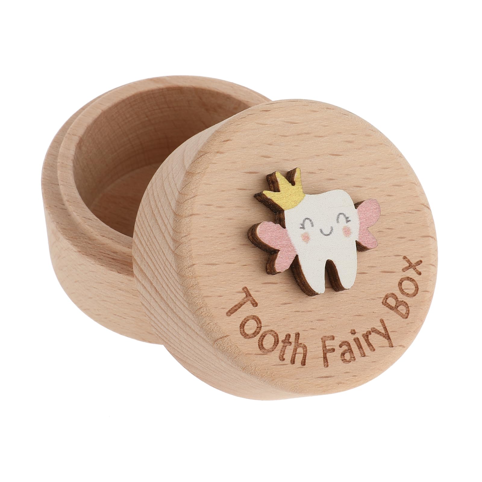 Lusofie Tooth Fairy Box 3D Carved Wooden Cute Tooth Box Lost Teeth Storage for Kids Tooth Fairy Gifts