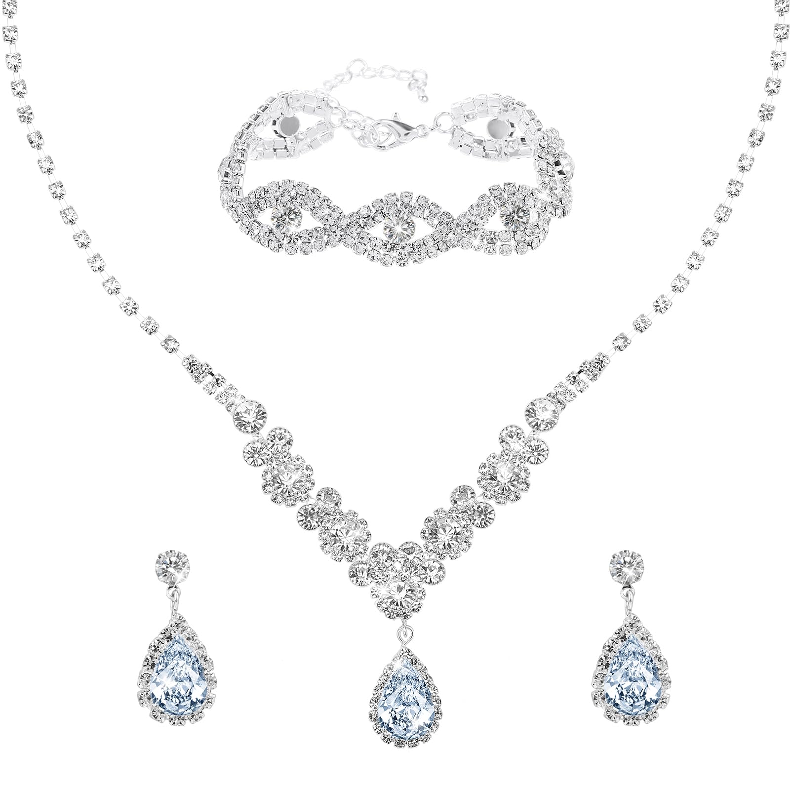 Lusofie Wedding Bridal Jewelry Set Rhinestone Jewelry Set Include Necklace Bracelet Earrings Crystal Prom Bridesmaid Jewelry Set for Women and Girls