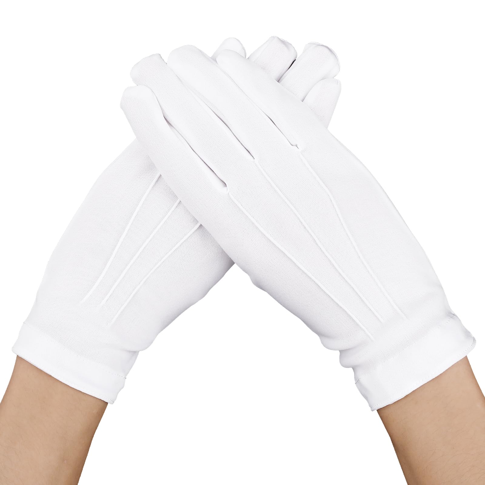 Lusofie White Cotton Gloves Men and Women Costume Stitched Uniform Gloves White Fancy Dress Gloves for Wedding Formal Tuxedo Party Jewelry Inspection