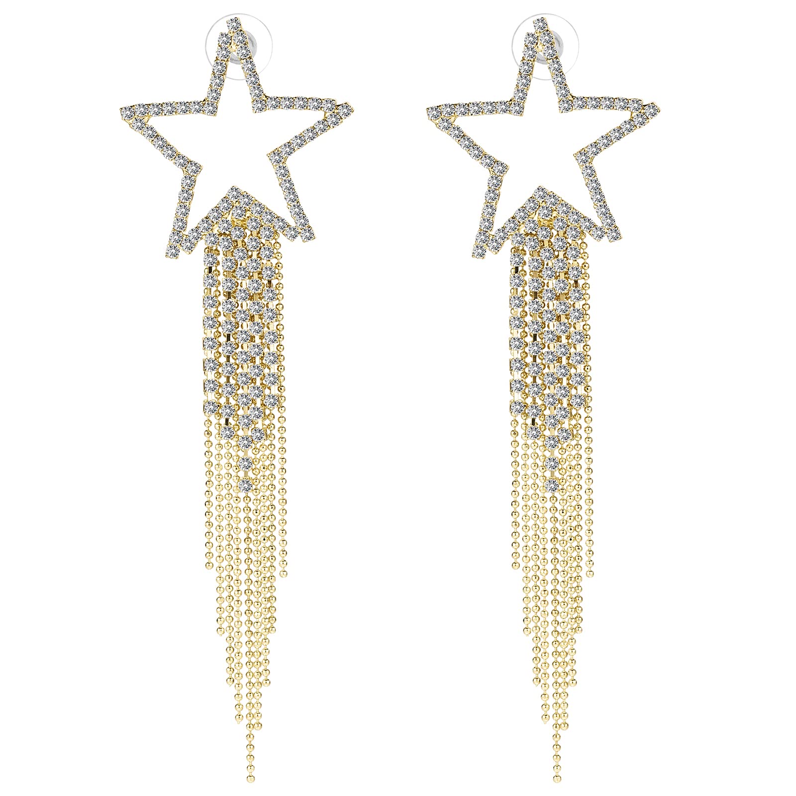 Lusofie Women’s Tassel Earrings Star Ear Stud Pave Crystal Dangle Earrings Rhinestone Fringe Chain Earring Bridal Jewellery Silver Tassel Drop Dangle Earrings Crystal Statement Dangle Earrings