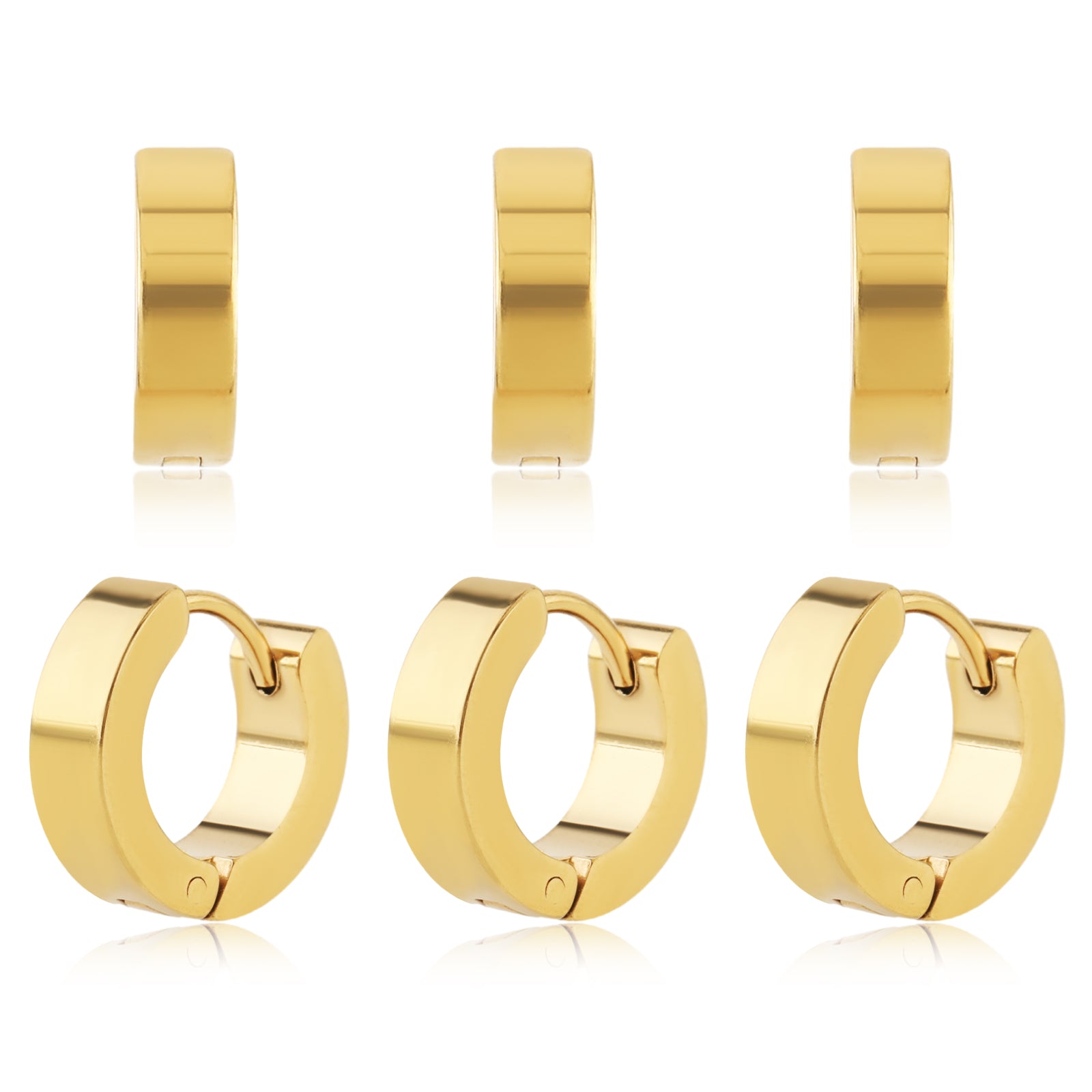 Men Hoop Earrings, 3 Pairs Hoop Earrings for Men Stainless Steel Mens Earrings Hoop Gold Silver Black Hoop Earrings Men Hypoallergenic Small Hoop Earrings for Men Women Wearing(Gold)
