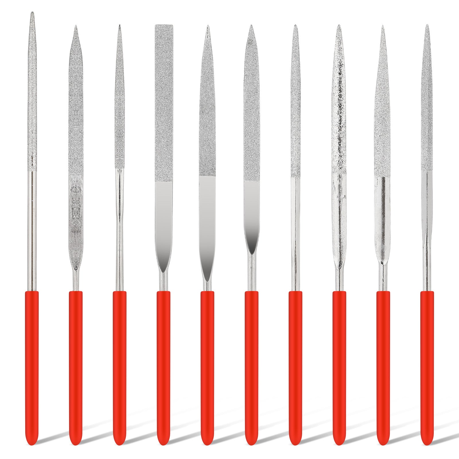 Metal File Needle Files Set, 10pcs Diamond Needle File Set for Metal Files for Steel, Mini Needle Files for Jewelers Glass Wood Carving Craft, 140mm Total Length, Red and Silver