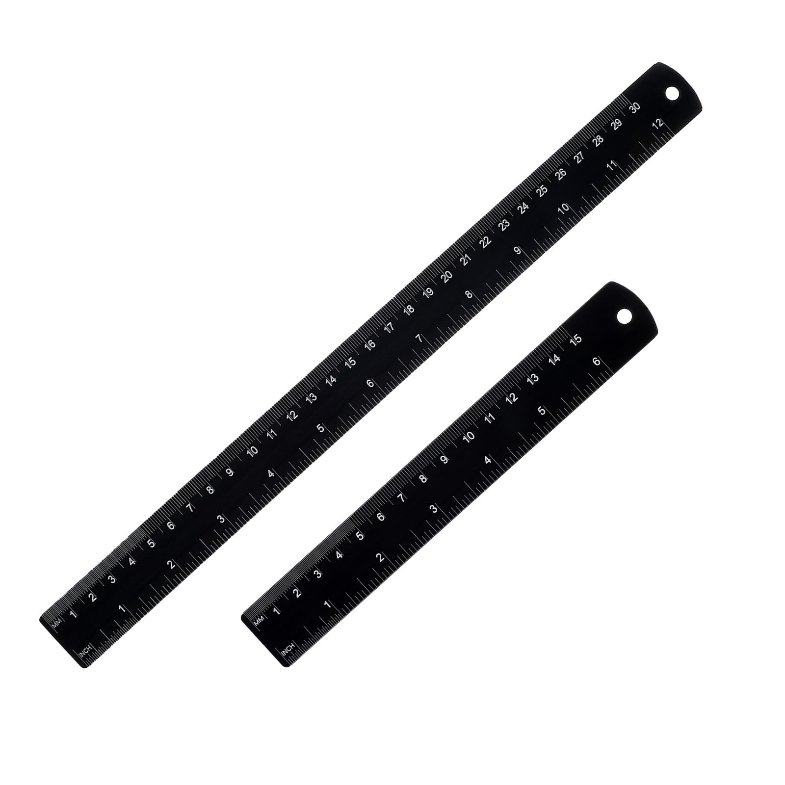 Metal Ruler Kit 12 Inch and 6 Inch, Stainless Steel Rulers with Centimeters, Millimeters, Inches and Conversion Table for Office and School, Easy to Read Metric Rule Set, 2 Pack