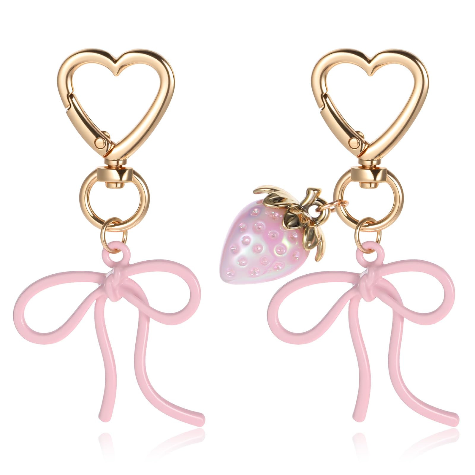 Meyeyaia 2pcs Pink Bow Keychain,Strawberry Bag Charm, Cute Strawberry Bow Bag Charm for Purse Backpack Handbag,Girly Accessories for Women
