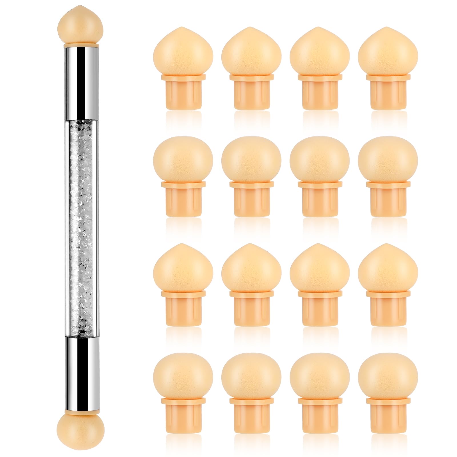 Nail Sponge 1Pcs Gel Nail Gradient Sponges Pen with 16Pcs Replaceable Nail Sponges for Ombre Double Head Brush Nail Art Acrylic Manicure DIY Tools