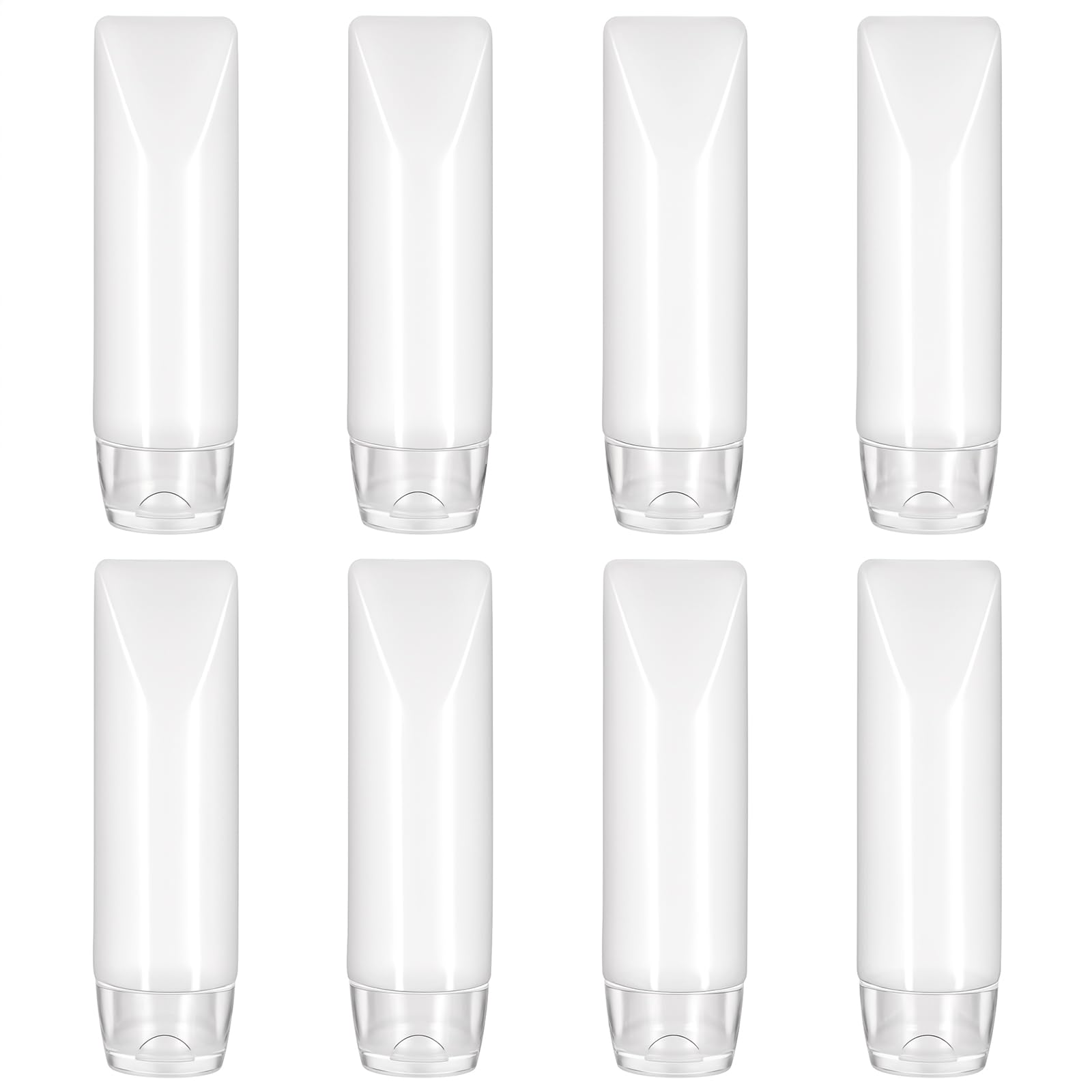 Pack of 8 Empty Tubes for Filling 30 ml Transparent Refillable Travel Cosmetic Container with Hinged Lid Travel Tubes for Filling Cosmetic Lotion Shampoo Liquids