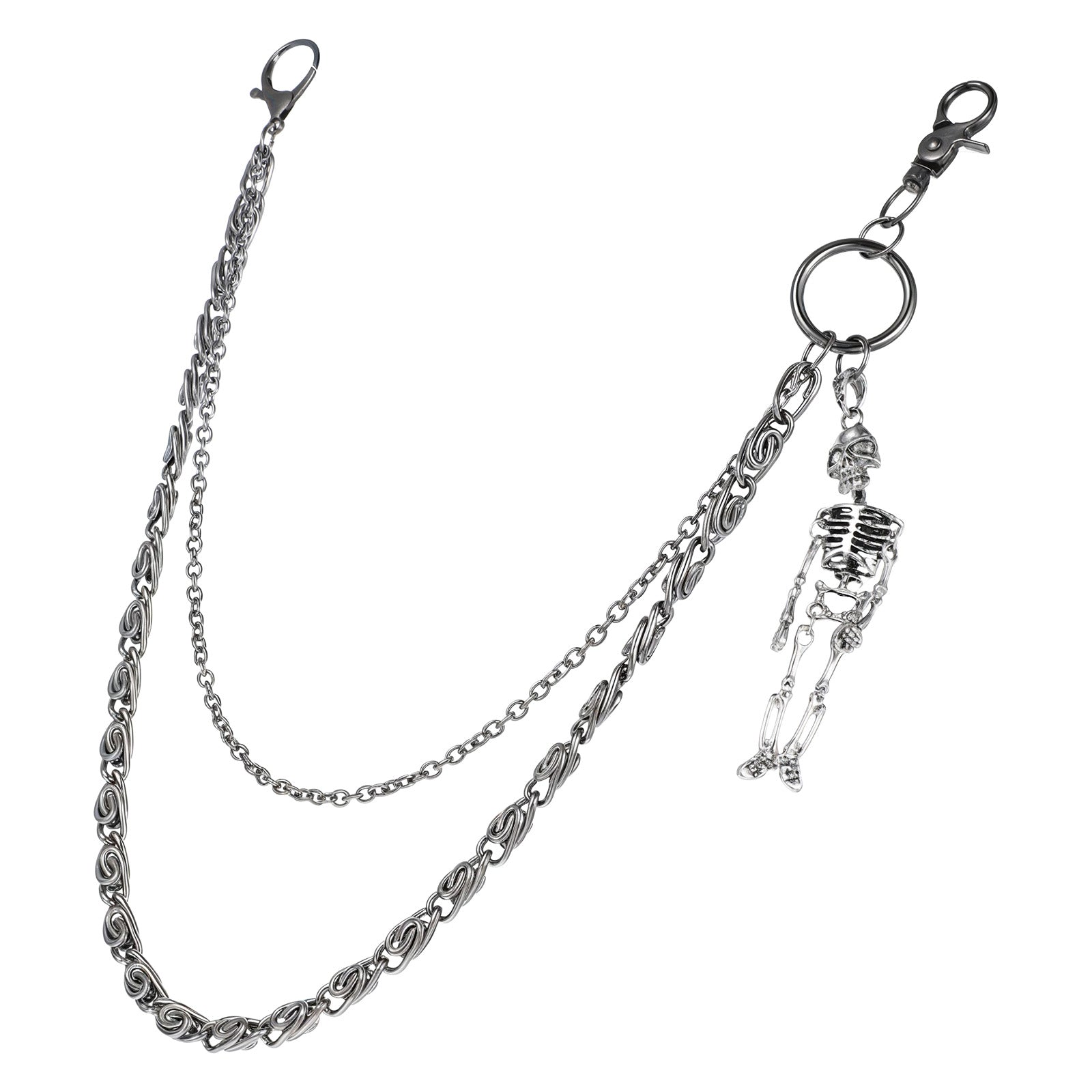 This 10cm long 3D skull pant chain for men is made of zinc alloy with a fine texture. Two 40cm long zinc alloy chains (128g) swing freely, showing a heavy double chain design, swinging freely on your jeans or jacket, suitable for matching jeans, bags and rock nights.