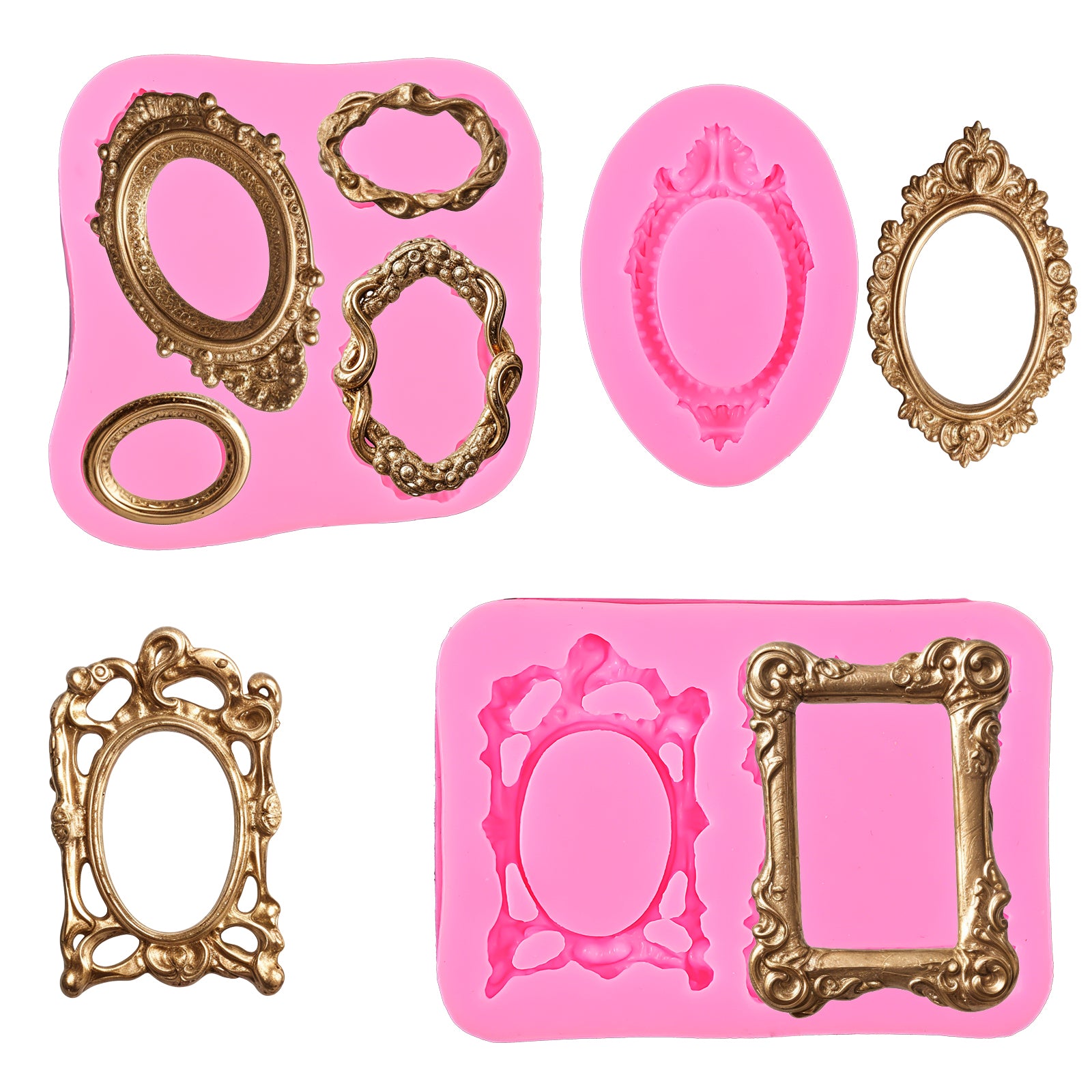 Photo Frame Fondant Molds Baroque Style Picture Frames Silicone Mold Frame Fondant Mold Silicone Fondant Molds for Cake Decorating Cupcake Topper Sugar Gum Paste Chocolate Candy Polymer Clay (Pink)