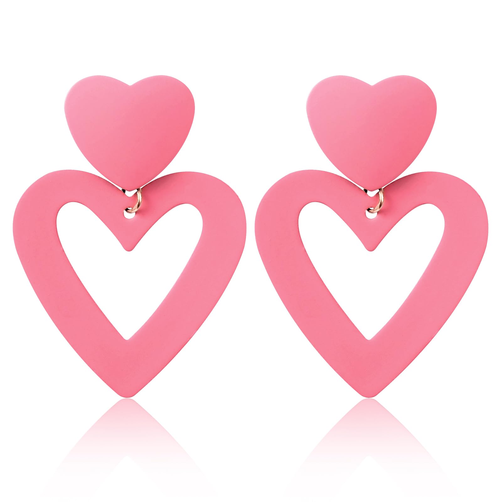 Pink Heart Earrings Double Heart Earrings for Women Hot Pink Heart Earring Love Heart Earrings Dangle for Valentine's Day Mother's Day Birthday Heart Shaped Earrings for Women Girl Jewelry Gifts