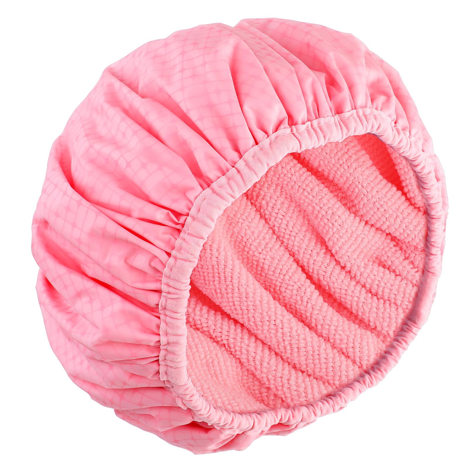 Pink Shower Cap,Waterproof Large Shower Cap for Women Reusable Double Satin Lined Shower's Caps for Long Thick Hair