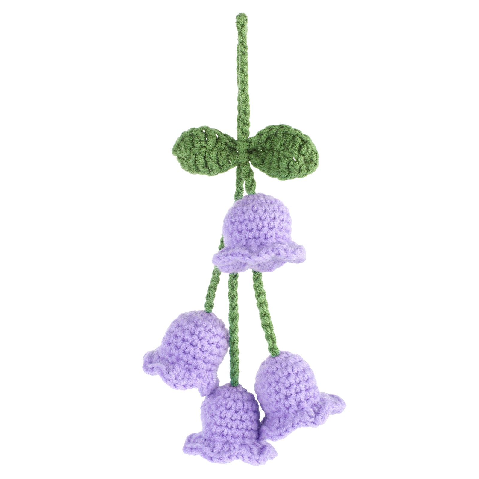 Rear View Mirror Hanging Accessories, Cute Car Accessories for Women, Bellflower Hand Knitted Car Pendant, Mirror Hanging Accessories for Your Car(Purple)