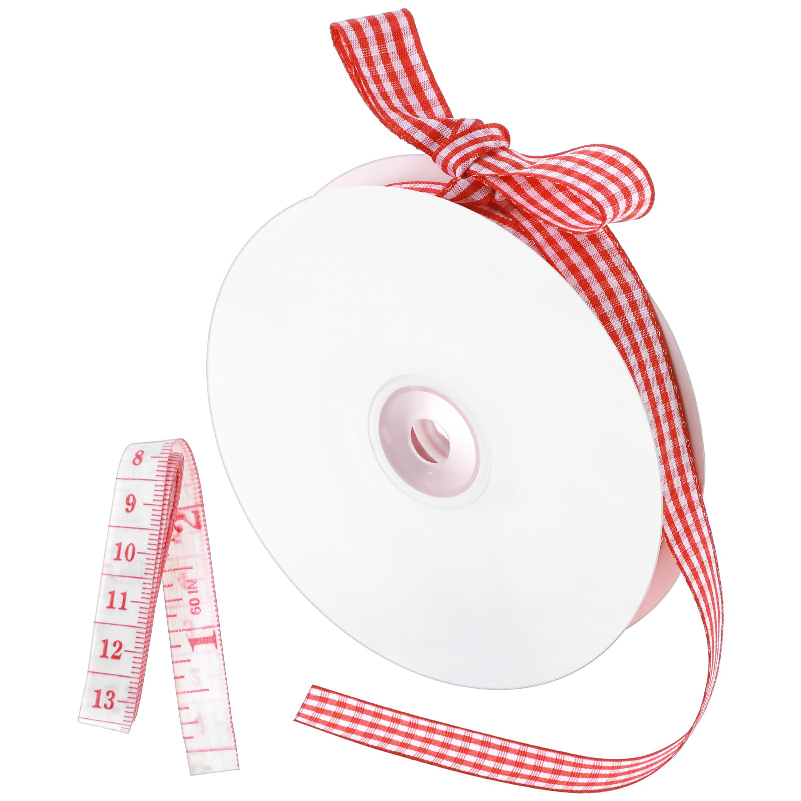 Product name: 1pcs Scottish red and white plaid packaging ribbon 1.5cm50 yards with measuring tape
