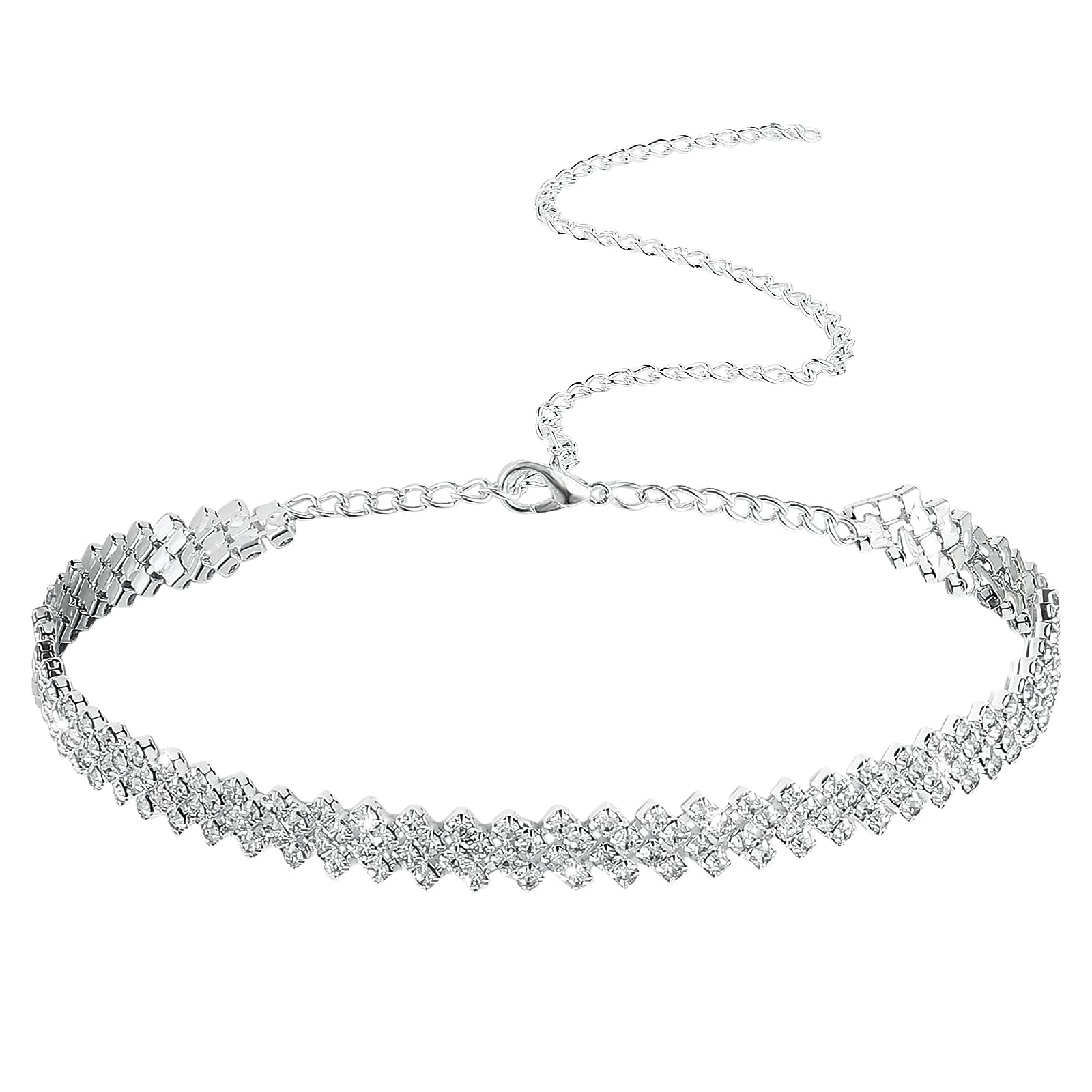 Rhinestone Choker Necklace Silver Diamond Necklaces Sparkly Crystal Necklace Chain Jewerly Party Prom Accessories for Women and Girls