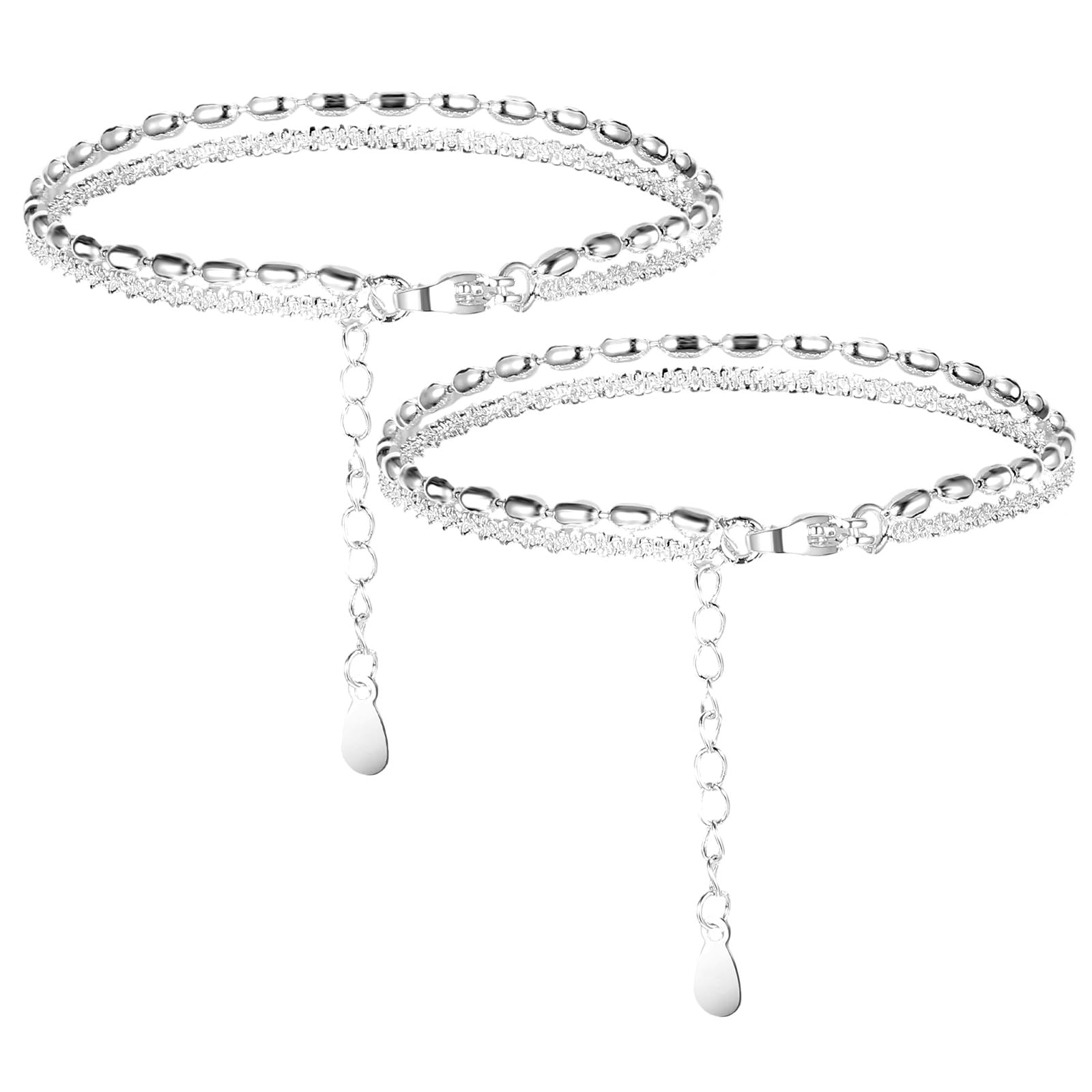 Silver Layered Bracelets Bracelets for Women, 6.5+2 Inches Exquisite Bracelets for Women Adjustable Chain Length for Dance Tea Party Birthday Party Dating