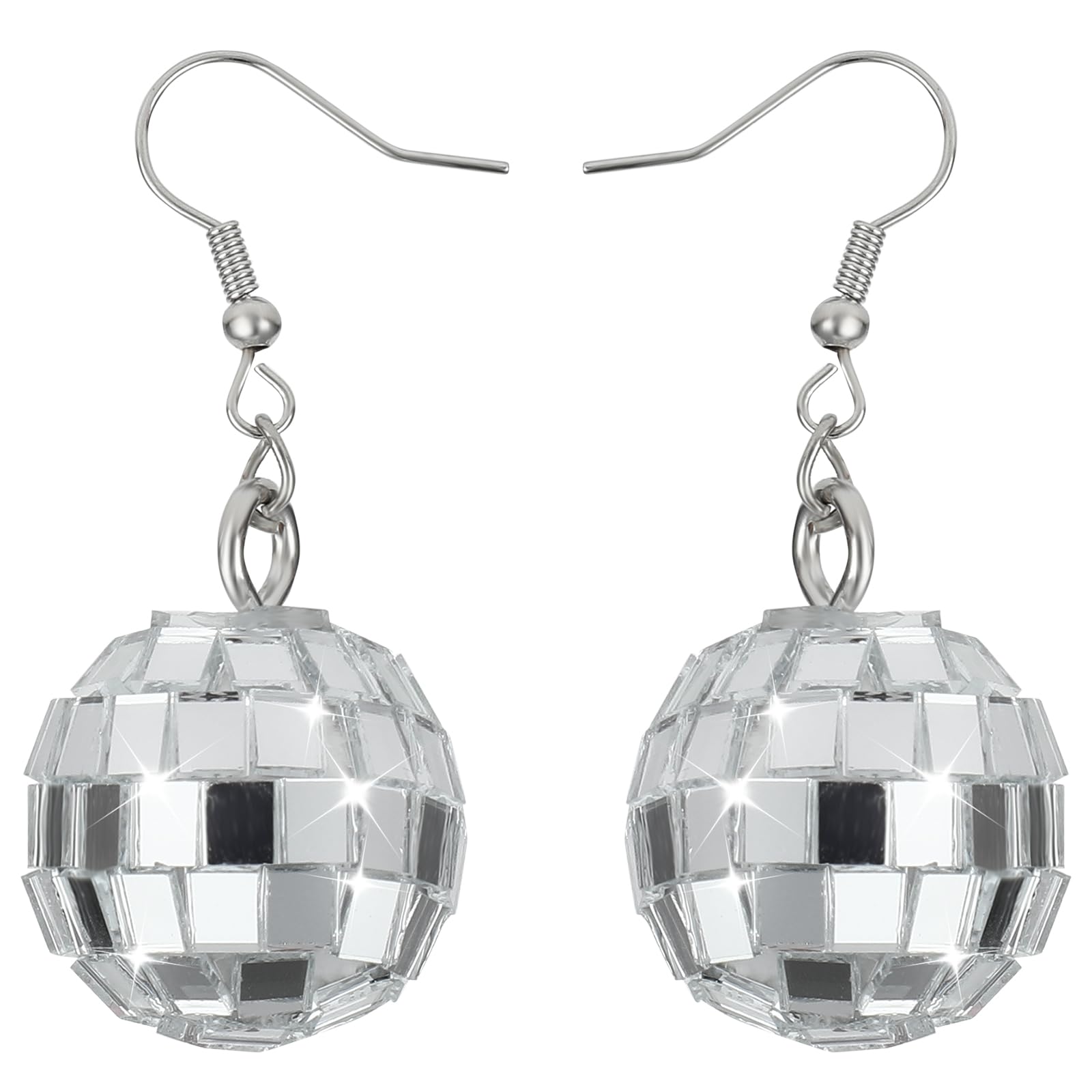 Silver Sparkling Disco Ball Earrings For Women 60's 70's Disco Drop Retro Mirrorbal Earrings Perfect For Disco Dance Party Costume Jewelry Accessories For Women Girls