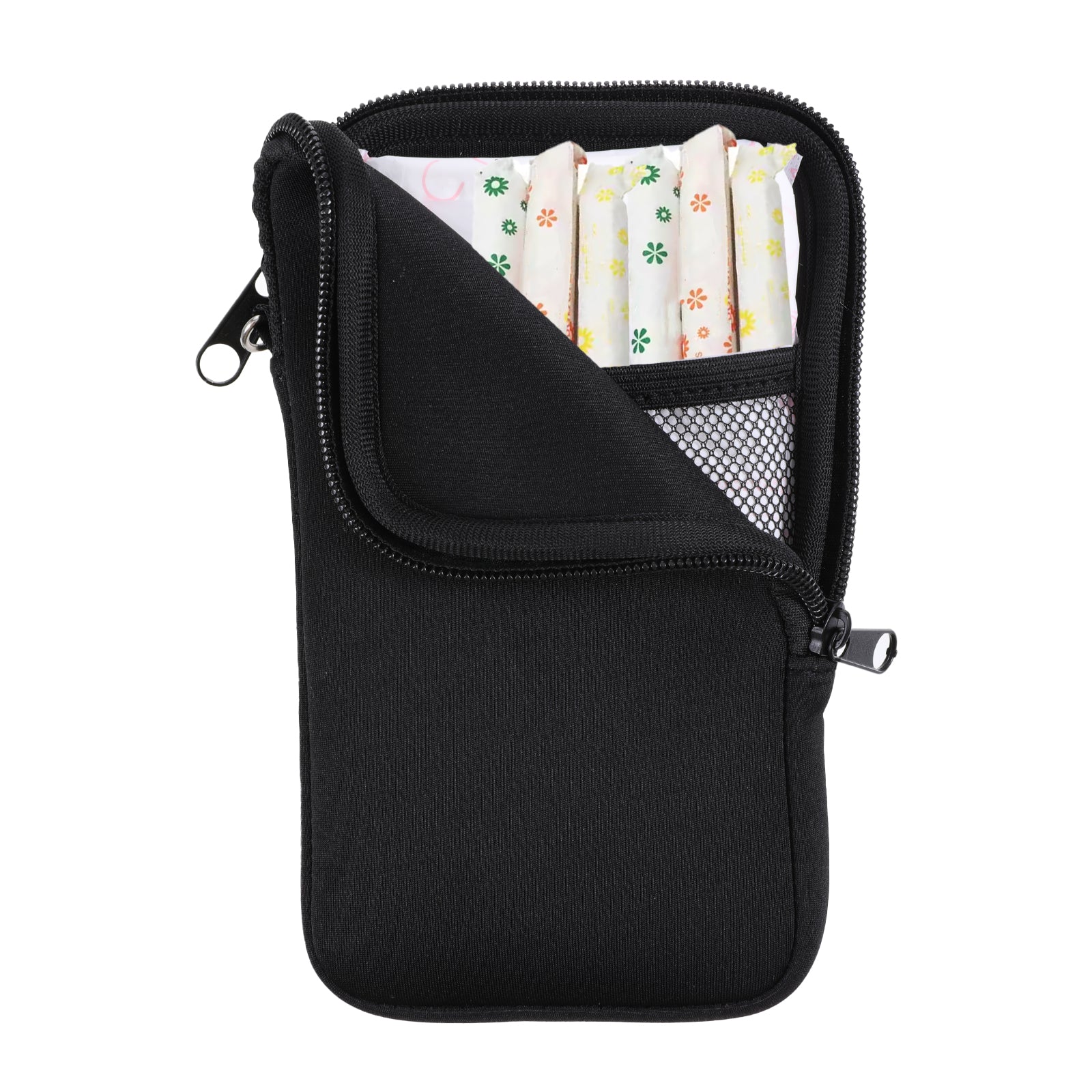 Tampon Storage Bag, Tampon Holder for Purse, Tampons Organizer Bag with Zipper, Portable Period Bags for Women, Discreet Feminine Product Pouch, Black