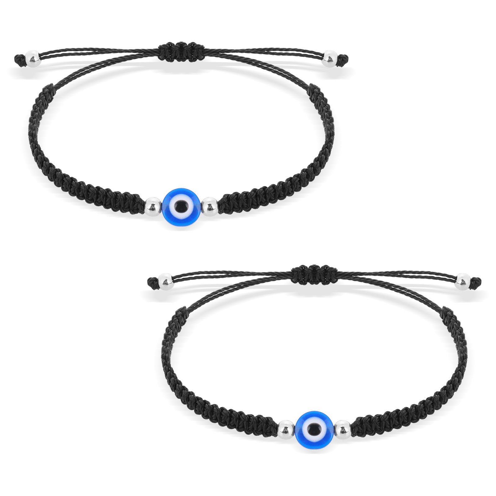 Packing list: 2 pcs braided evil eye bracelets, one card