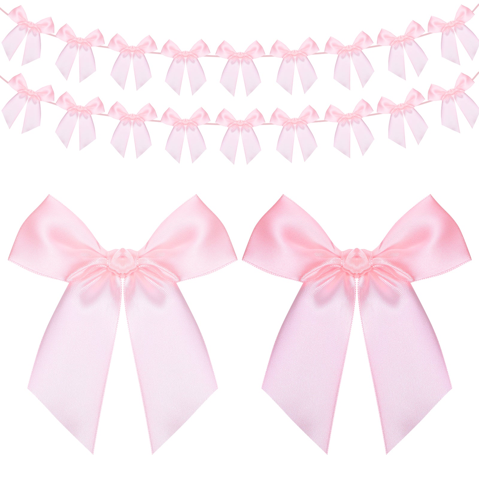 Telooco 2pcs Pink Bow Garland Bow Garland Bows Banner Pink Ribbon Party Decorations for Birthday Party Decor Bridal Shower Wedding Favors Engagement Baby Shower Supplies