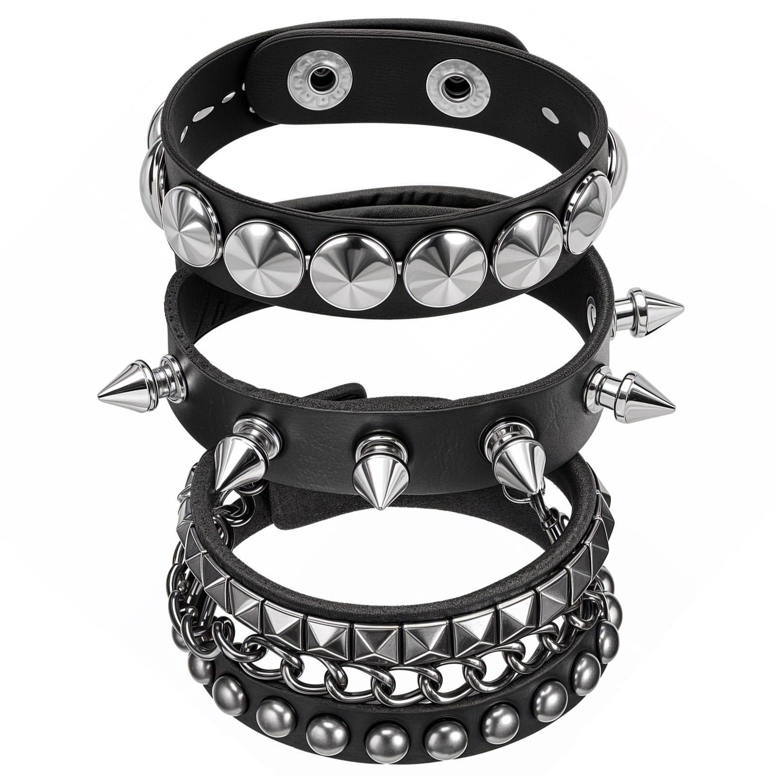 Discover the ultimate punk bracelets set with 3pcs leather studded designs. Perfect for emo, goth, and rock styles, these spiked wristbands elevate any outfit.