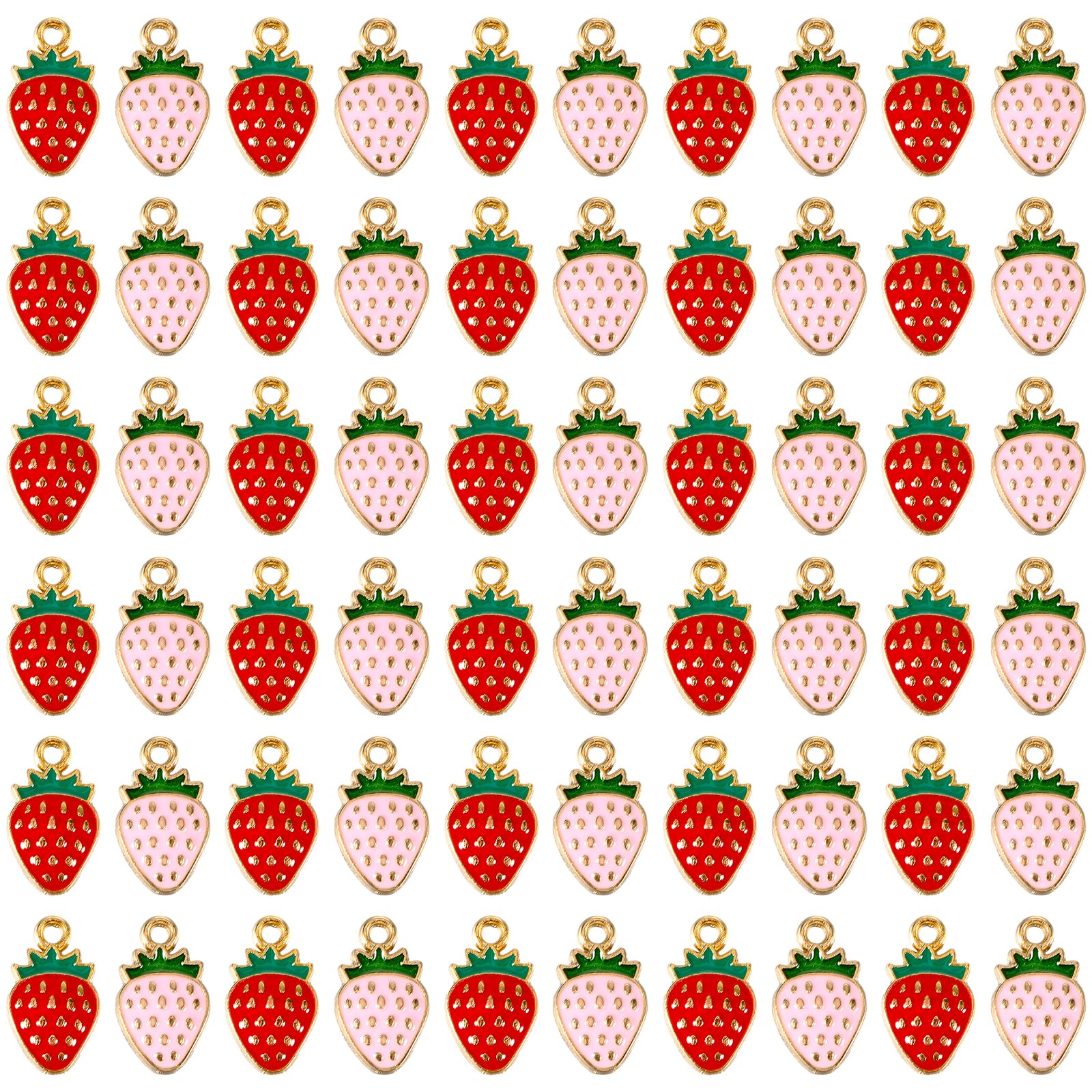 Telooco 60Pcs Strawberry Beads Enamel Strawberry Charms Bulk Strawberries Flatback Fruit Charms for Jewelry Making Earrings Keychain Supplies Craft(Pink, Red)