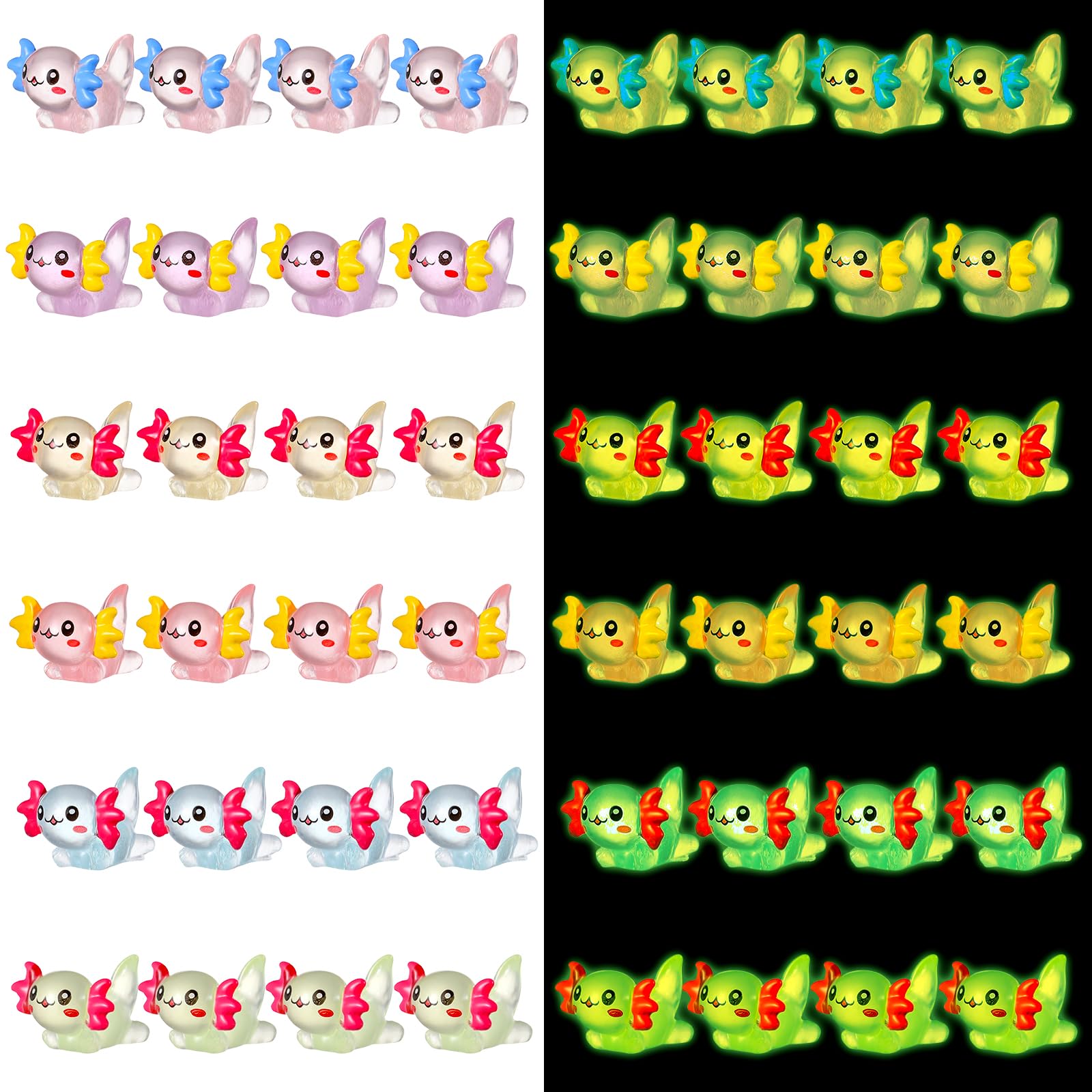 Telooco Mini Axolotl 24Pcs Colorful Tiny Resin Animals in Bulk Mini Axolotl Figurine to Hide 6 Colors Axolotl Stuff for Garden Ornament Aquarium Landscape DIY(Luminous)