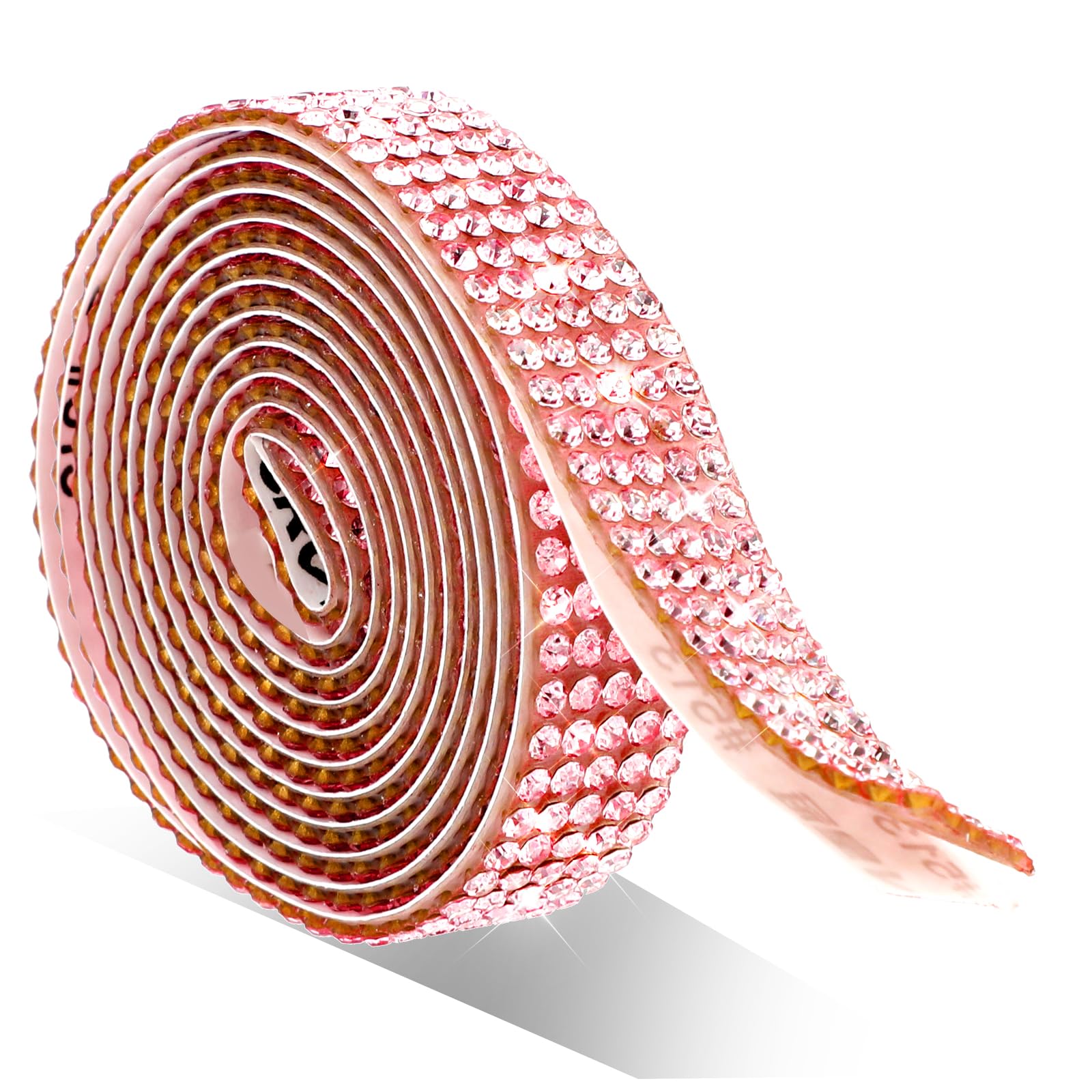 Telooco Self Adhesive Rhinestone Ribbon Rhinestone Strips Glitter Sticker Roll for DIY Phone Mirror Shoes Car Decorations(Pink)