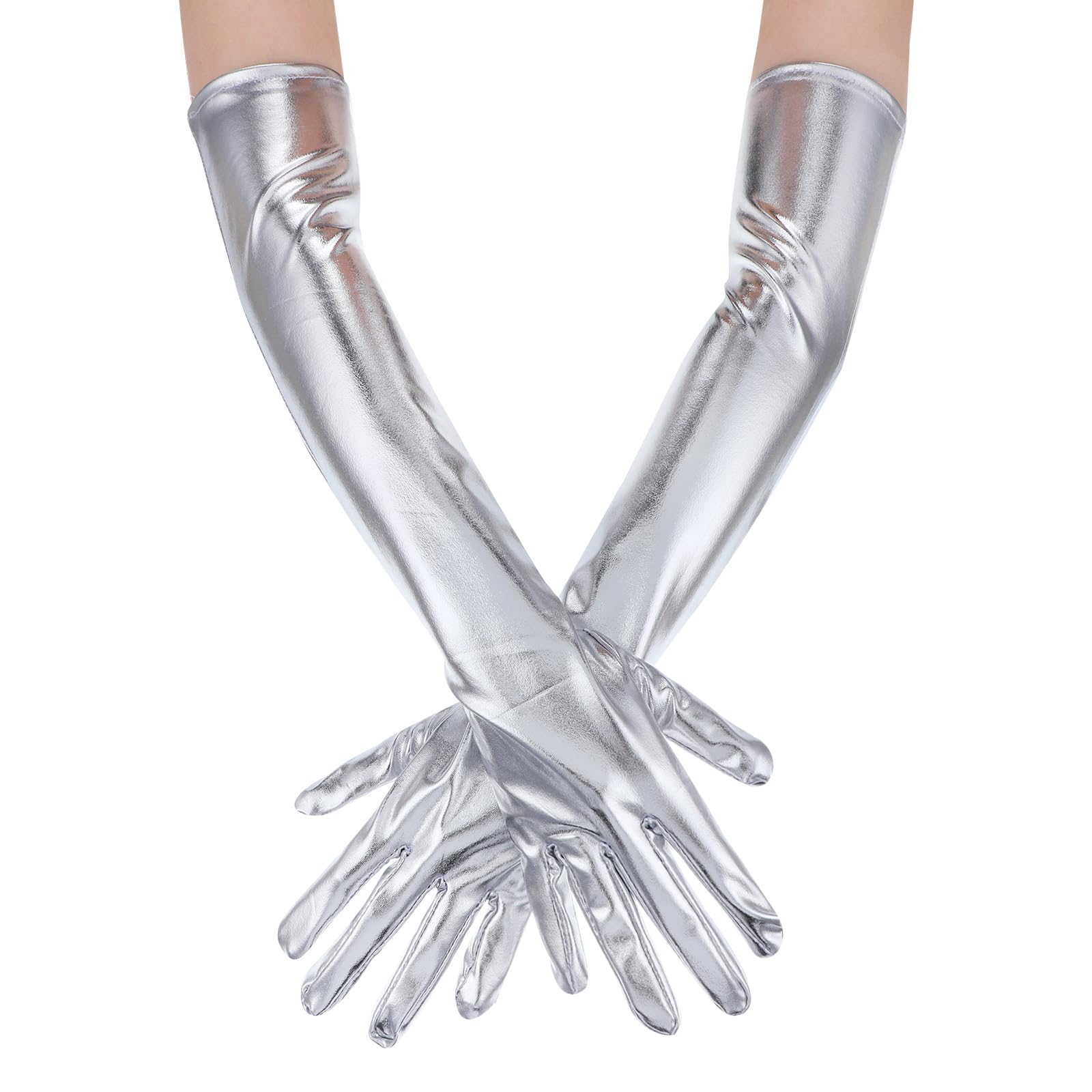 Telooco Silver Gloves Long Metallic Gloves Shiny Metallic Spandex Glove 20s Party Costume Accessories for Women Halloween