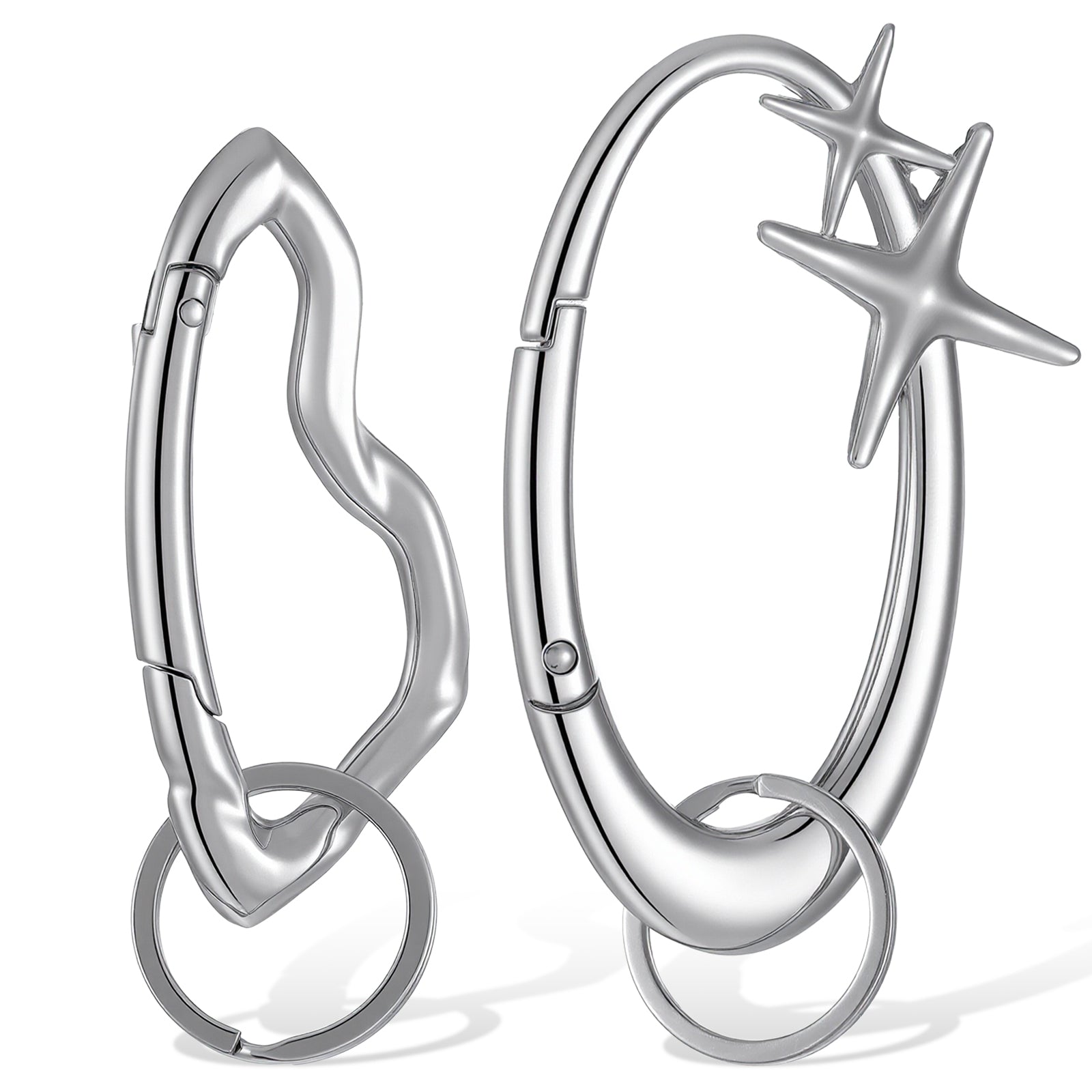 Tucnoeu 2pcs Cool Y2K Metal Shiny Key Ring, Star Carabiner Keychain, Irregular Carabiner Keychain Unisex, Shiny Chrome Caribiner for Car Keys Purse Handbag Backpack Bag Charms