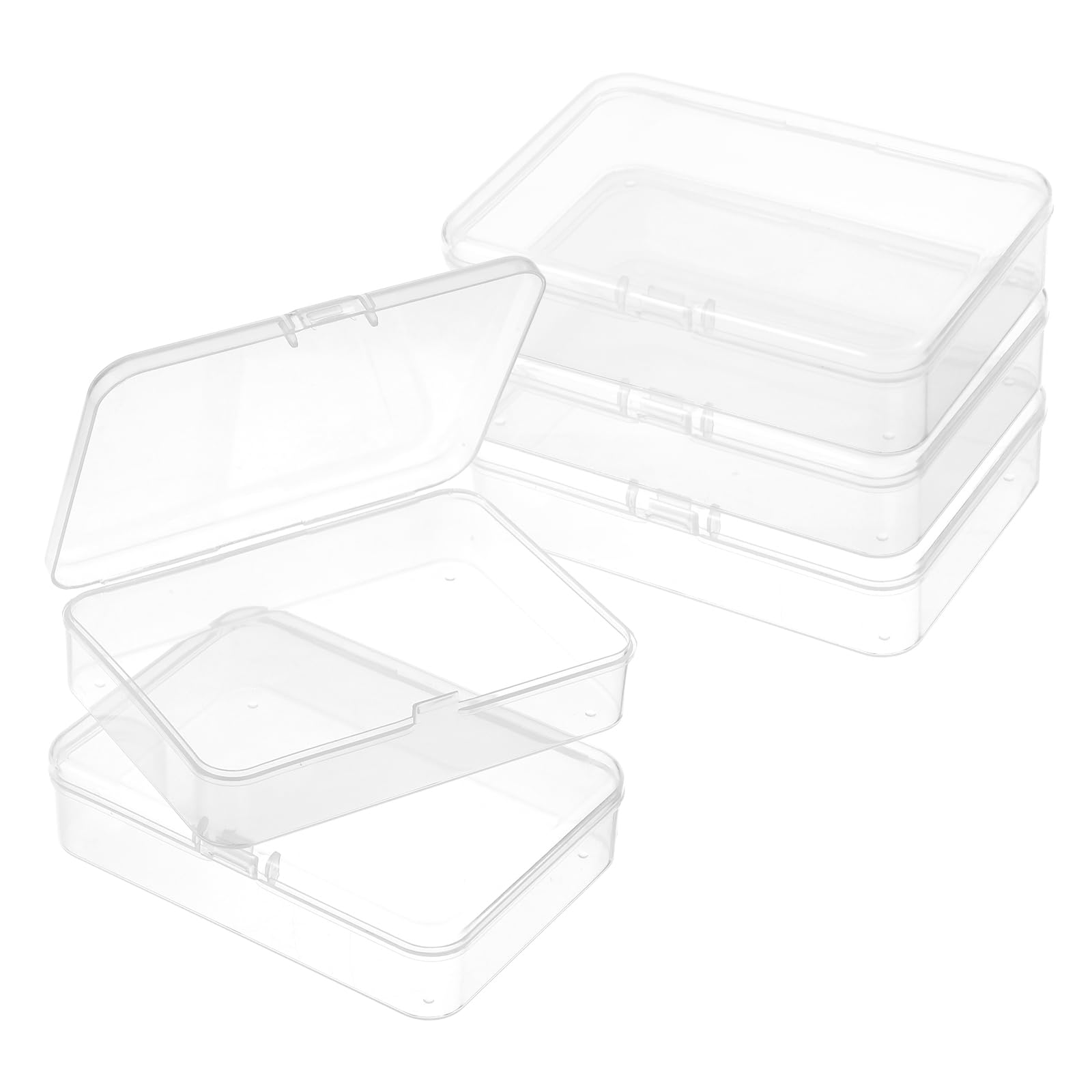 Tucnoeu 5pcs Small Plastic Containers with Lids,4x3x1 Inches Clear Rectangle Box for Collecting Small Items,Beads,Game Pieces,Business Cards,Crafts Accessories