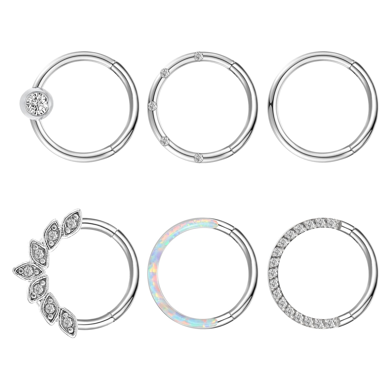 Tucnoeu 6pcs 18 Gauge Nose Ring,Surgical Steel Nose Ring,Cz Opal Septum Ring,Stainless Steel Septum Nose Rings,Nose Ring Hoops for Women,Cartilage Hoop Earring,Nose Piercing Jewelry