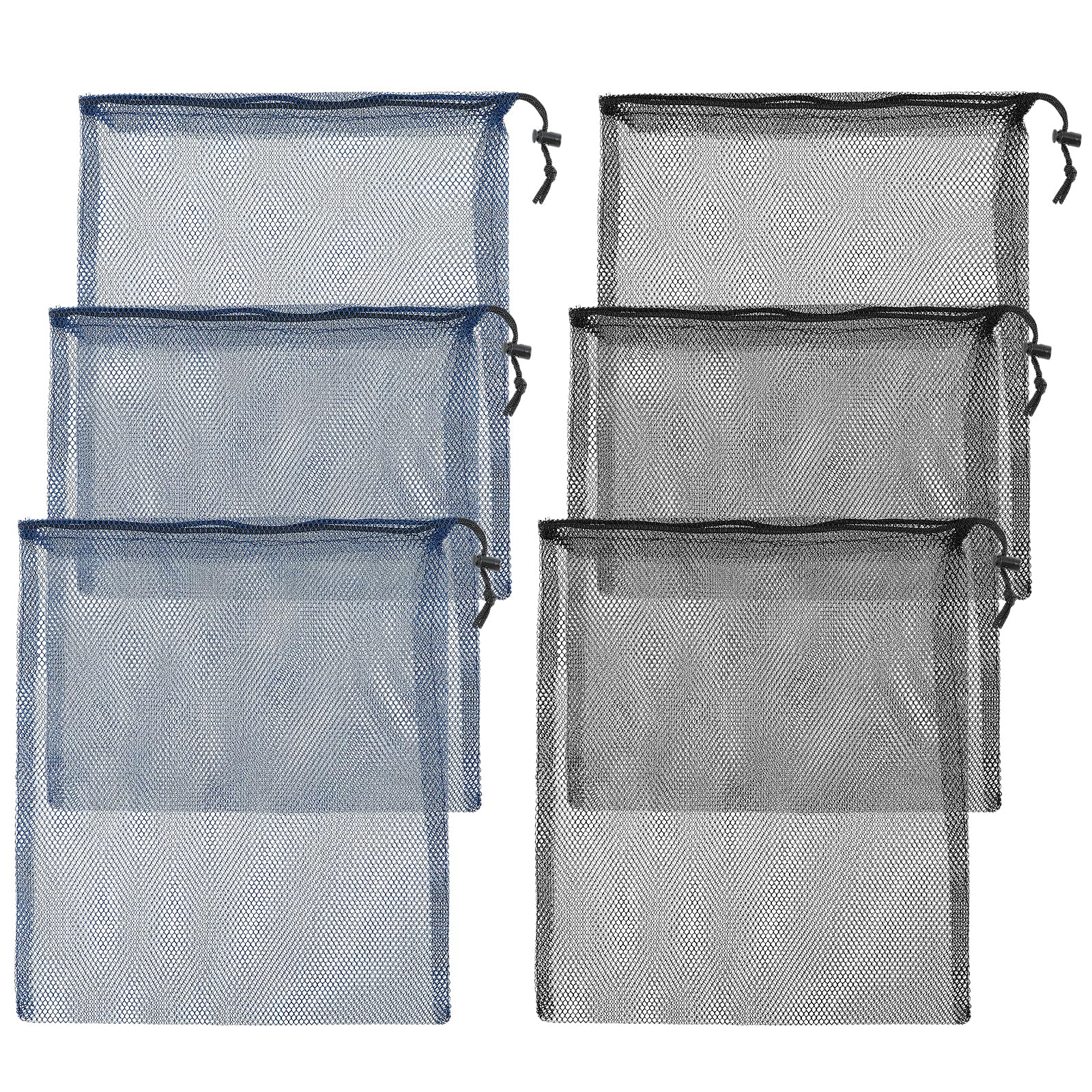 Tucnoeu 6Pcs Mesh Drawstring Bag,Scalloping Bag 13.7 x 15.7 inches Polyester Small Drawstring Pouch for Flushing Beach Toys,Shell Collection,Mesh Bags and Travel Black, Navy