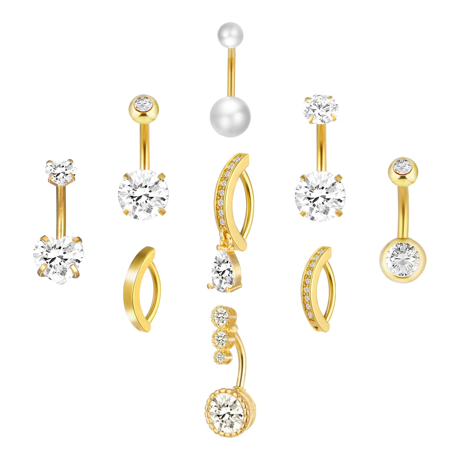 Tucnoeu 9pcs Long Belly Button Rings,14G Stainless Steel Diamond Belly Rings For Women,Pendant Navel piercing Jewelry with Butterfly