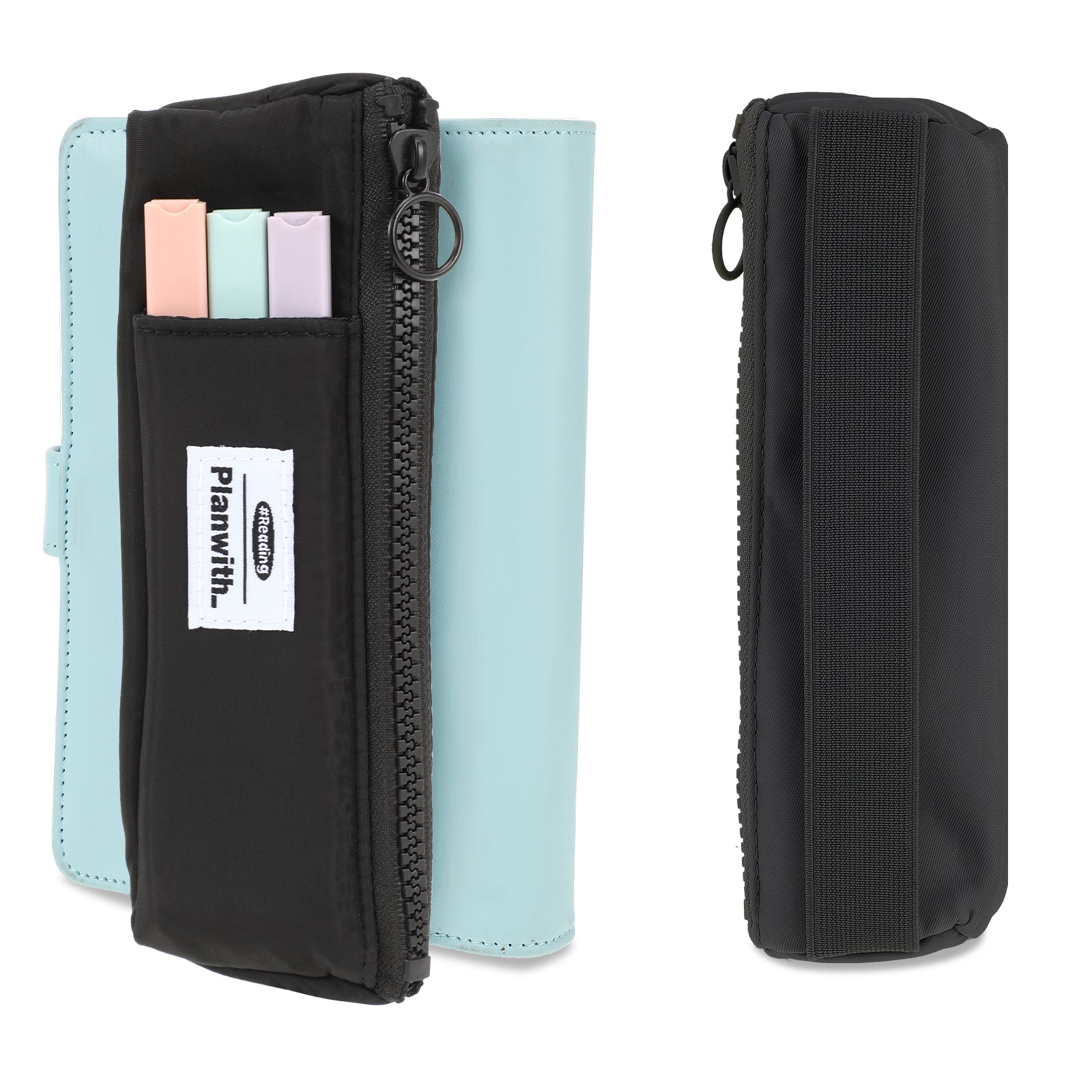 Tucnoeu Pen Pouch for Notebook,Black Notebook Pen Holder,Small Pencil Case with Zipper and Adjustable Elastic Band,Small Pencil Case Slim for Hardcover,Notebooks,Books