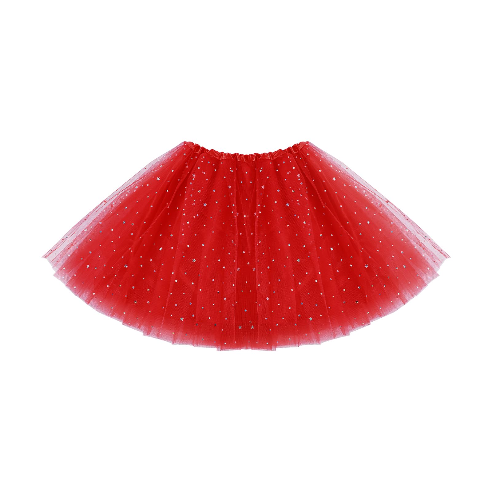 Tutu Skirts for Women Adults Tulle Skirts with Sequin Stars 3 Layered Mesh Skirt with Lining Retro 80s Fancy Dress for Women Bubble Skirt for Rave Costume Party Dance Running Cosplay(red)