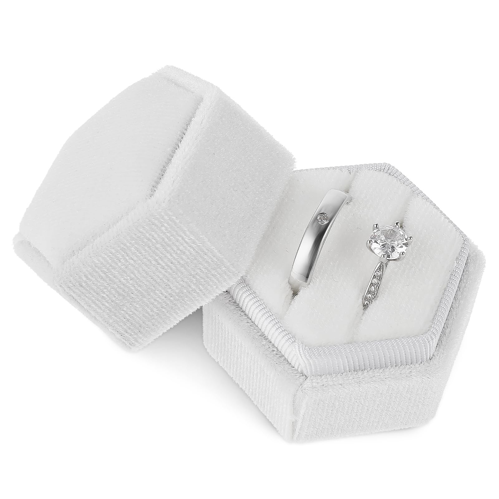 Product name: 1 hexagonal velvet ring box, off-white Product style: simple Product color: off-white Product material: velvet Single product size: 5cm/1.97in*4.5cm/1.77in Product Usage: This jewelry box for rings is perfect for any occasion, from proposals to weddings to anniversaries. This is sure to be a treasured keepsake for years to come.