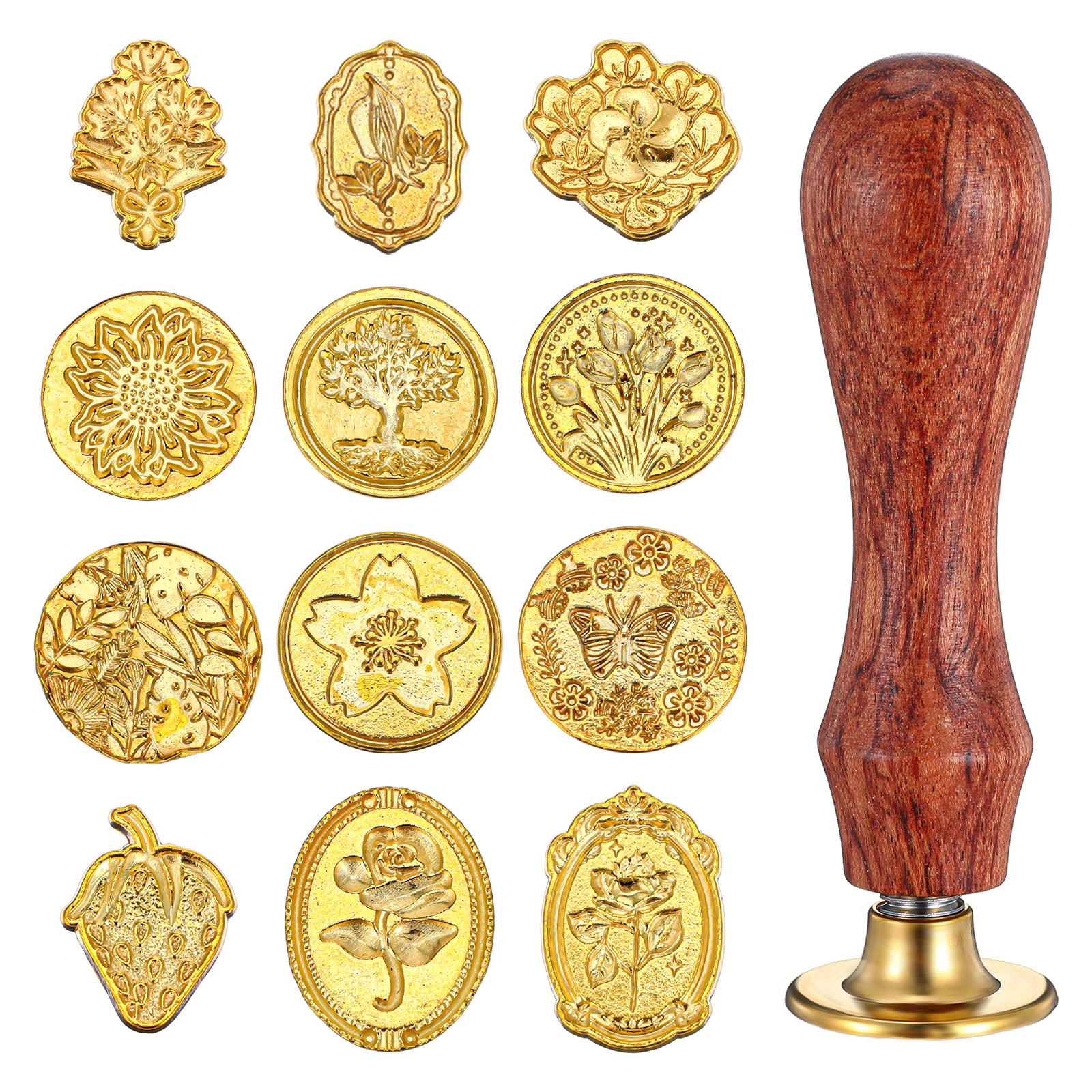 Discover the elegance of our wax seal stamp kit, featuring 12 sealing wax stamp heads and a wooden handle. Perfect for custom wax seal stamps on letters, invitations, and crafts.