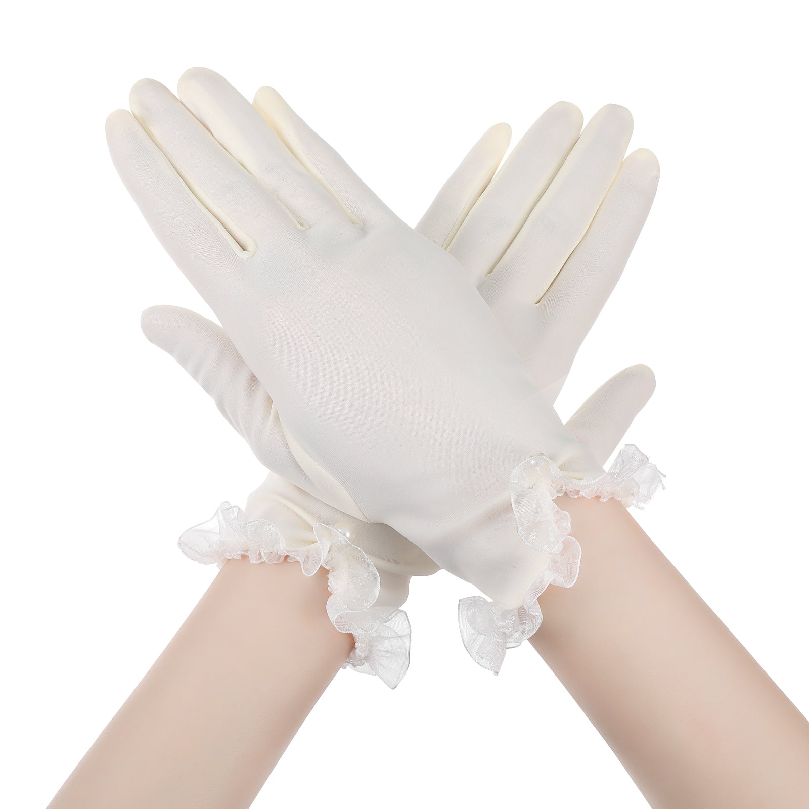 White Gloves Women Pearl Short Satin Gloves for Tea Party Wedding Bridal Dinner Opera Party Prom Masquerade Banquet Dress Formal Special Occasion