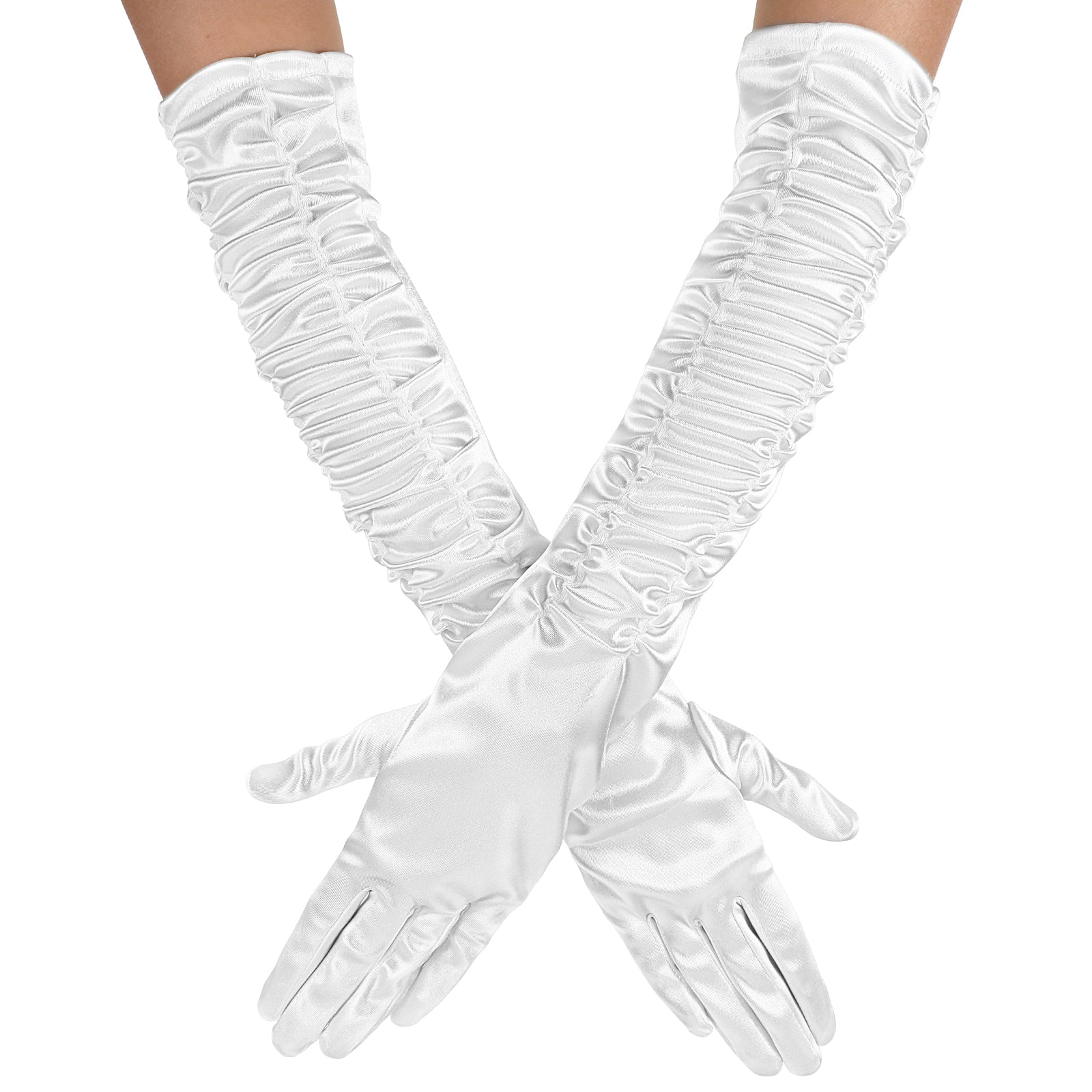 White Long Satin Gloves Women Shirred Formal Gloves 1920s Gatsby Accessories for Opera Masquerade Tea Party Wedding