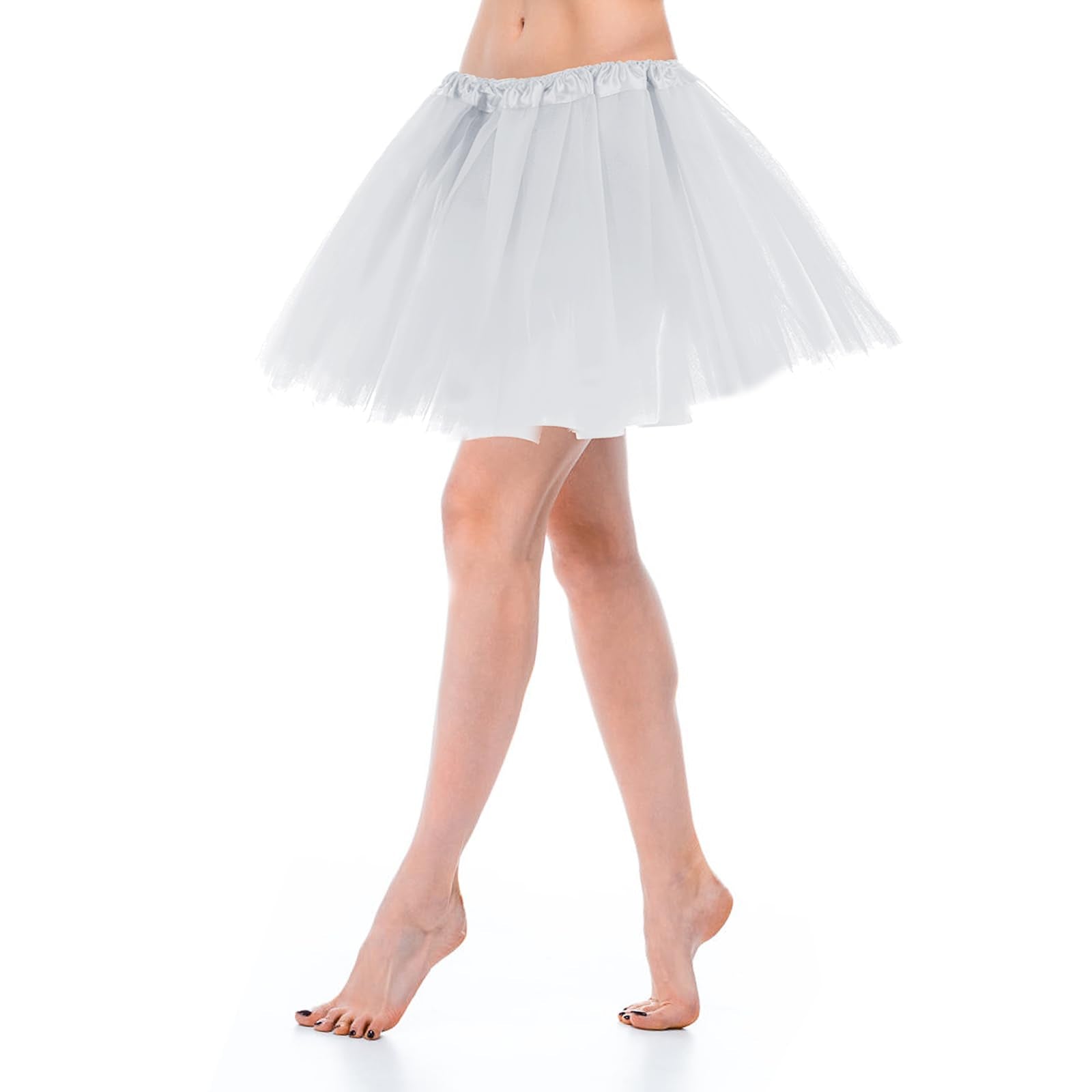 Women's Tulle Skirt Teen Adult Classic Elastic 3 Layered Tulle Tutu Skirt for Dress-up Parties Dancing for Women (White)