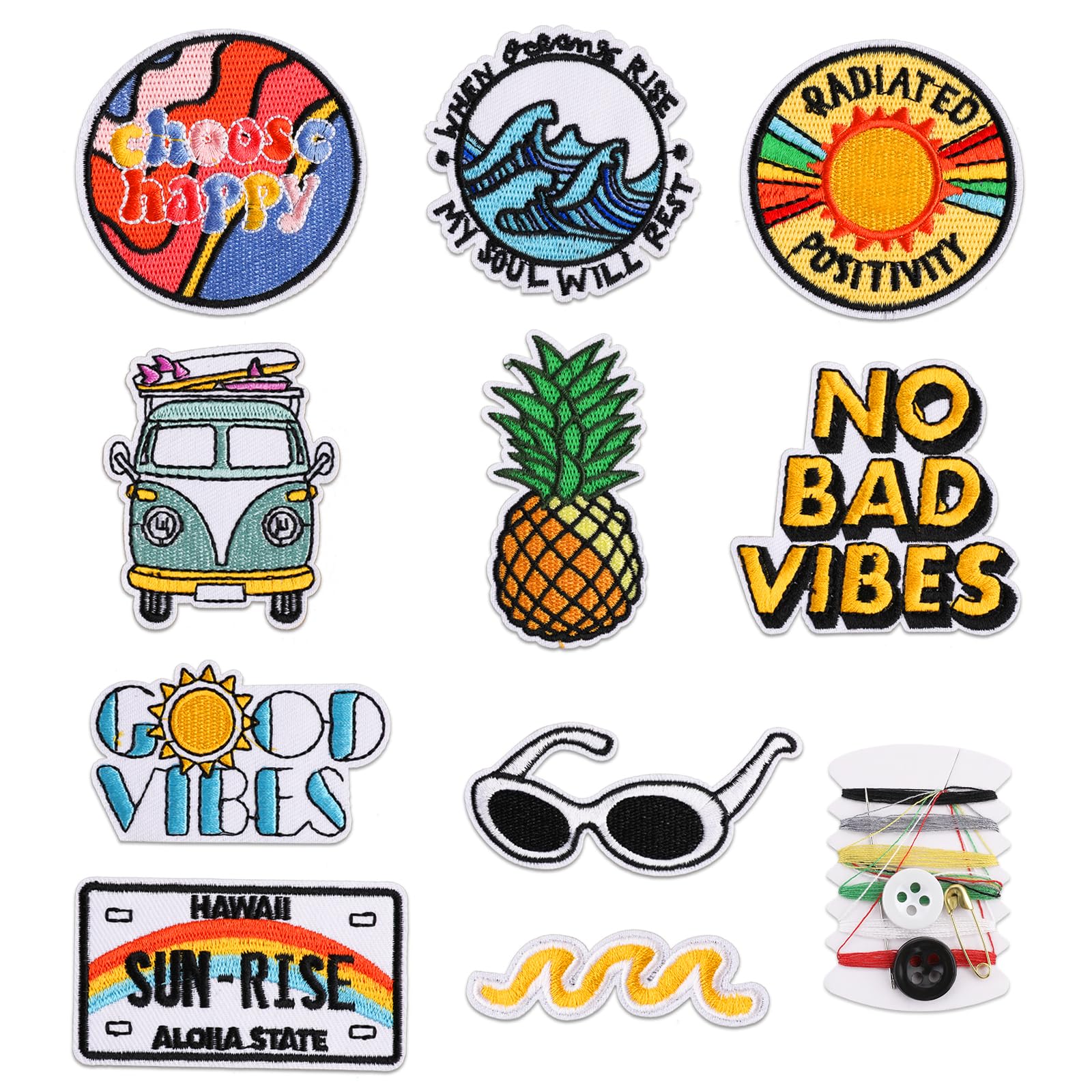 Yolev 10 Pieces Iron On Patches and Cool Embroidered Iron On Patches for Clothing with Sewing Kit for Jackets Backpacks Jeans Backpacks and Clothes Each Embroidered Patch is Durable and Sticks