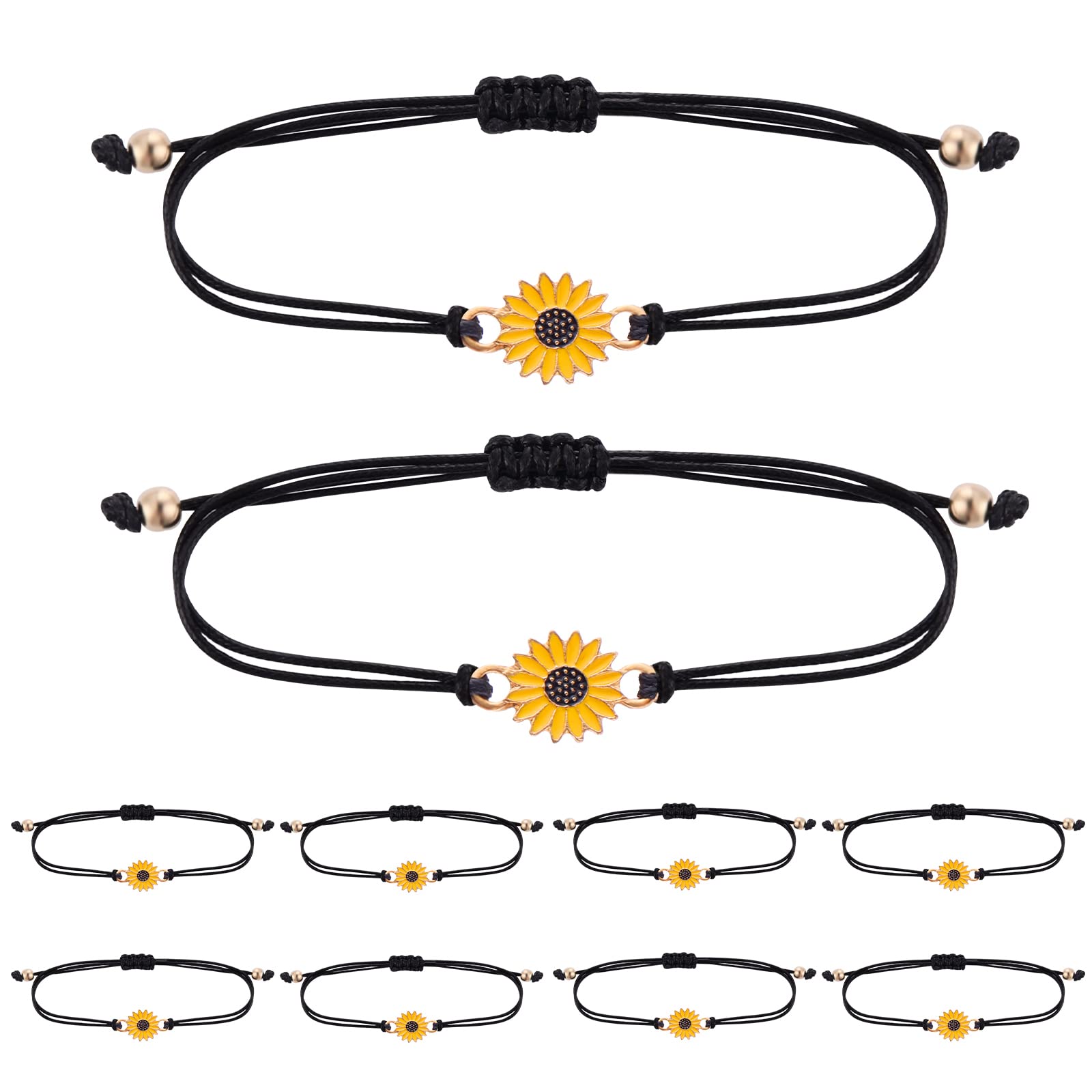 Yolev 10 Pieces Sunflower Bracelets Handmade Boho Friendship Bracelets Handmade Friendship Bracelets for Women Girls Summer Party Gift Favors