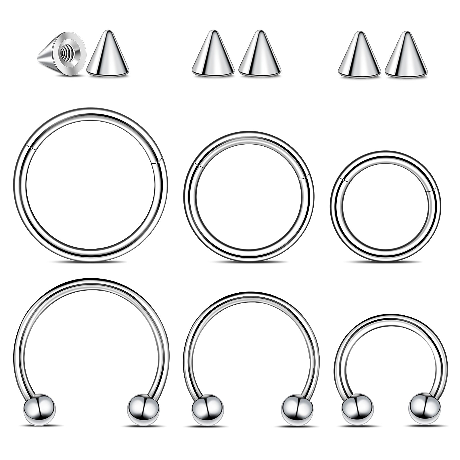 Yolev 12pcs Horseshoe Rings Septum Rings 16g Septum Nose Ring Hoops Surgical Steel Piercing Jewelry 8mm/10mm/12mm Hinged Clicker Segment Ring Lip Eyebrow Daith Helix Cartilage Earrings Sliver