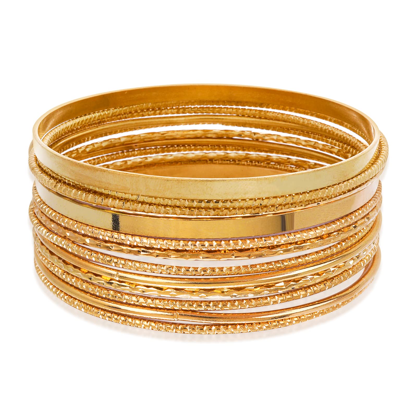 Yolev 14Pcs Gold Boho Multi Bangle Bracelet Set for Teen Girls Punk Chunky Stackable Day Bridal Wedding Party Layered Cable Smooth Bracelets