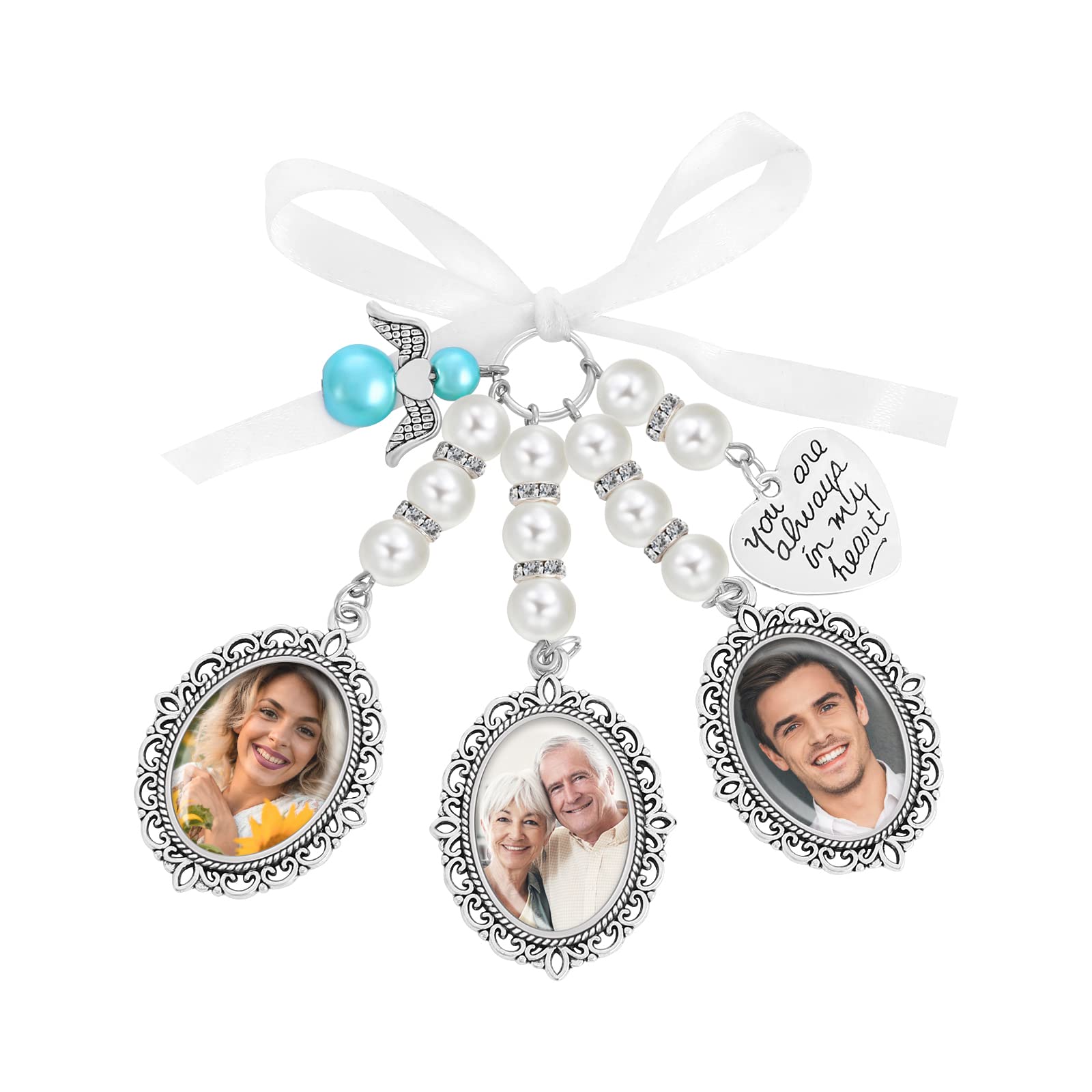 Yolev 1Pcs Wedding Bouquet Photo Charm Wedding Bouquet Charm with 3 Picture Frame Anniversary Photo Charms Photo Charm for Bridal Wedding Bouquet