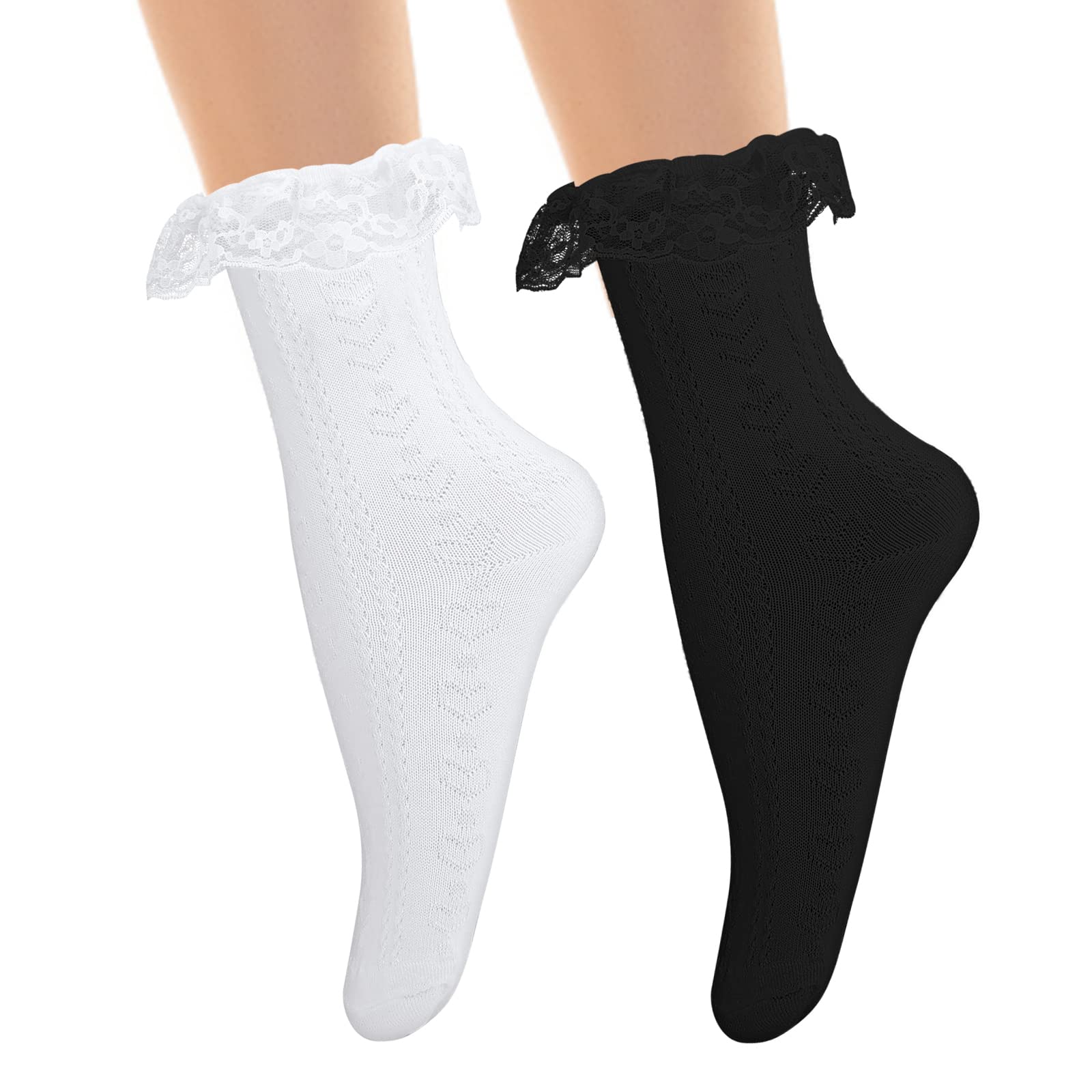 Yolev 2 Pairs Of Lace Ruffle Socks Cute Women's Ruffle Socks Lace Princess Socks For Ladies And Girls