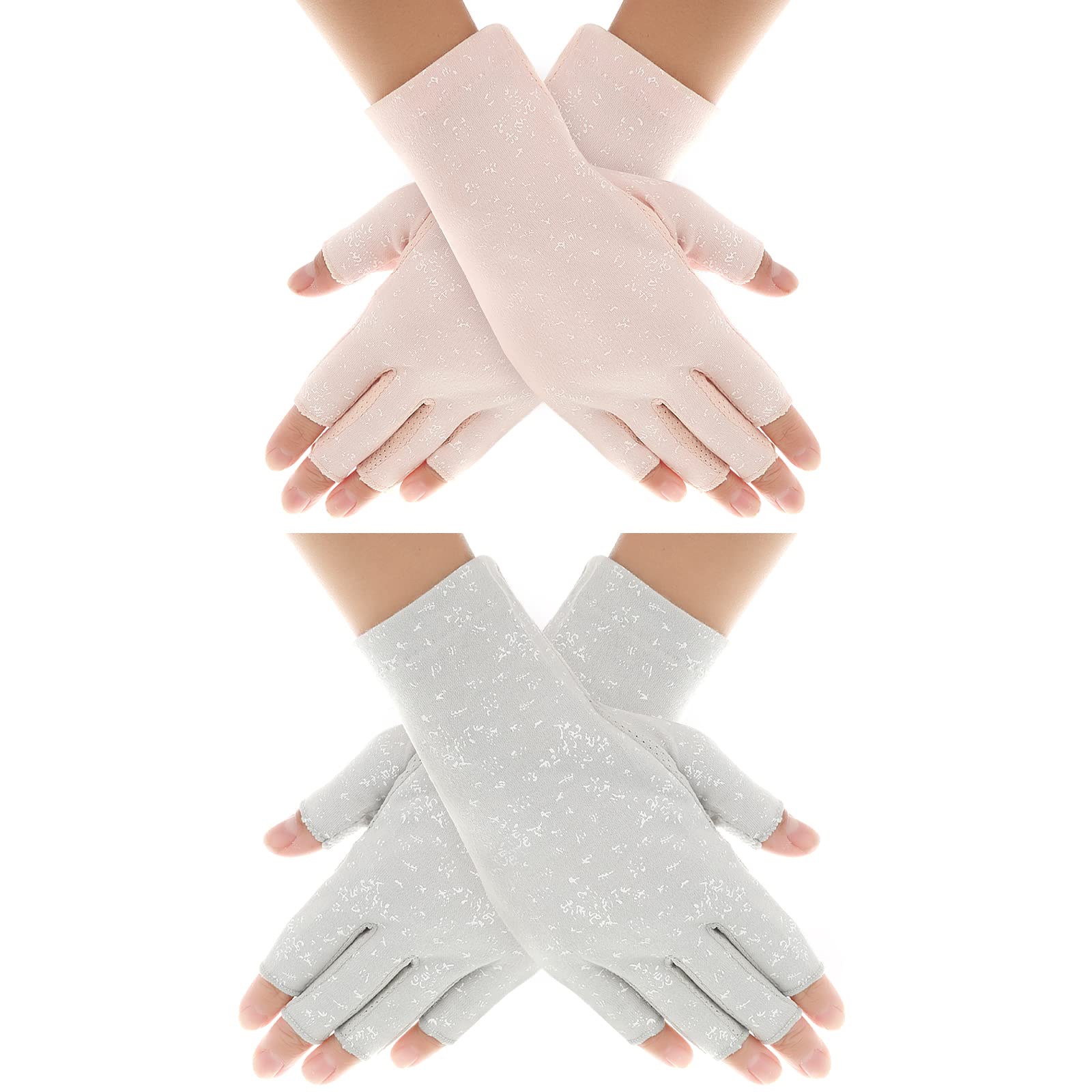 Yolev 2 Pairs Women Sunblock Fingerless Gloves Non-Skid Summer Gloves UV Skin Protection Hands Cover for Outdoor Sports Touchscreen Gloves